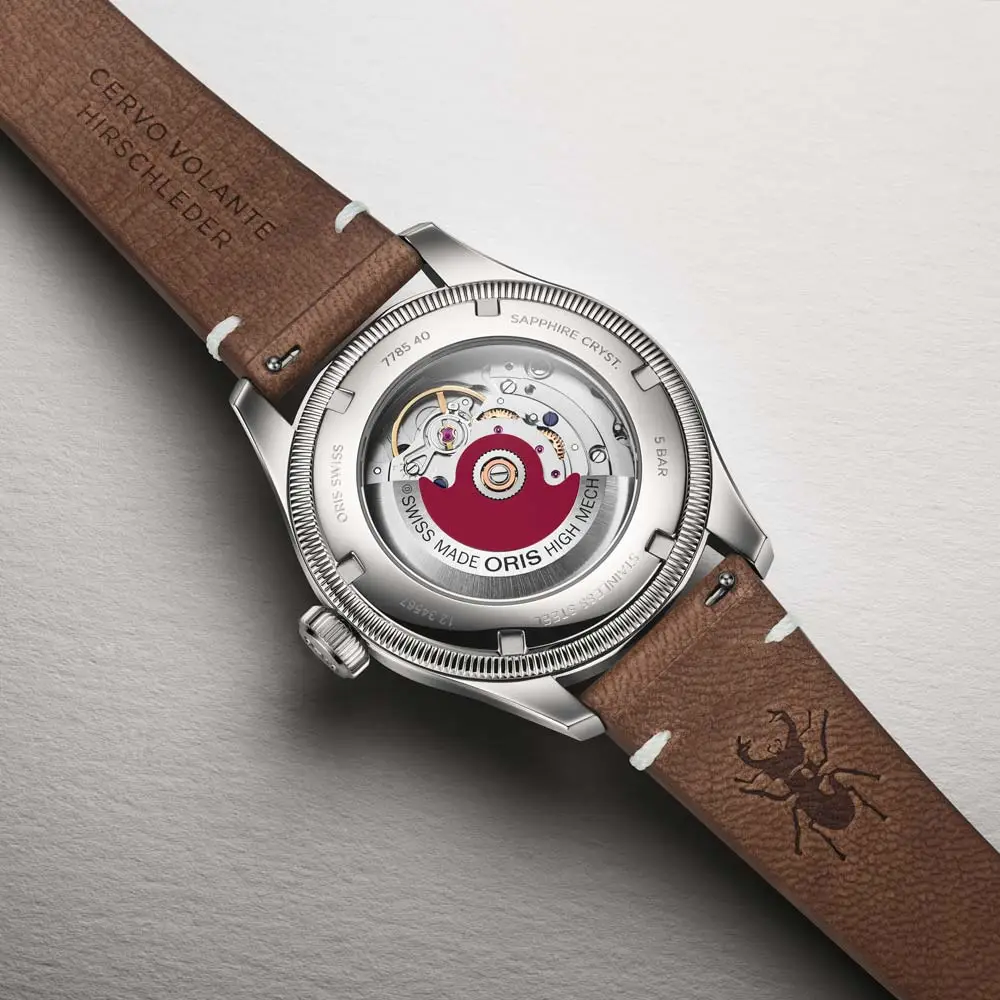 Mẫu đồng hồ này được phát triển hợp tác với thương hiệu Thụy Sĩ Cervo Volante, nổi tiếng với các sản phẩm từ da hươu có nguồn gốc bền vững. Đồng hồ được trang bị dây da hươu màu nâu mahogany, mang lại cảm giác đeo thoải mái và vẻ ngoài tự nhiên. Với khả năng chống nước 5 ATM / 50 m, bộ máy cơ đáng tin cậy và thiết kế vượt thời gian, đây là lựa chọn lý tưởng cho cả sử dụng hằng ngày và các dịp trang trọng.