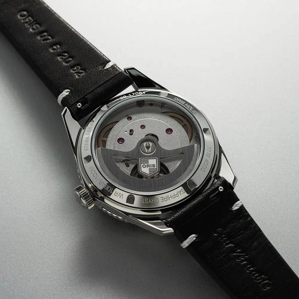 Bên trong là bộ máy cơ tự động Oris Calibre 400 in-house tiên tiến, cung cấp trữ cót lên đến 120 giờ (5 ngày). Bộ máy có khả năng chống từ cao và chu kỳ bảo dưỡng lên đến 10 năm, đảm bảo độ bền và độ chính xác lâu dài. Nắp lưng trong suốt cho phép quan sát bộ máy.