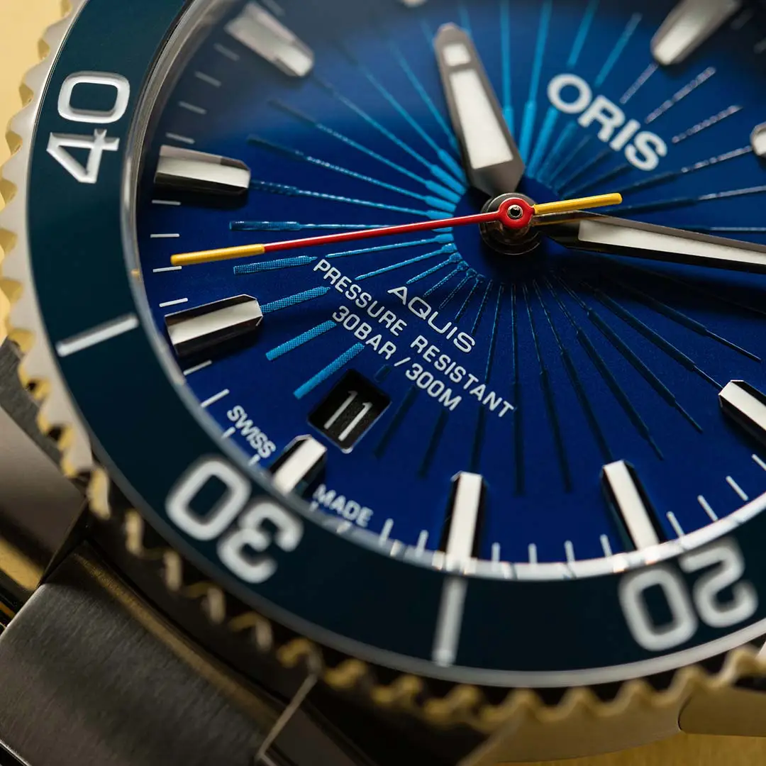 Oris Aquis là bộ sưu tập lặn biển cao cấp của thương hiệu , kết hợp giữa tính năng chuyên dụng, thiết kế bền bỉ và phong cách hiện đại. Được thiết kế cho các hoạt động lặn biển chuyên nghiệp, bộ sưu tập Aquis cung cấp khả năng chống nước lên đến 300 mét, núm vặn vít, vành bezel xoay một chiều, cùng khả năng chịu va đập và áp lực cao.