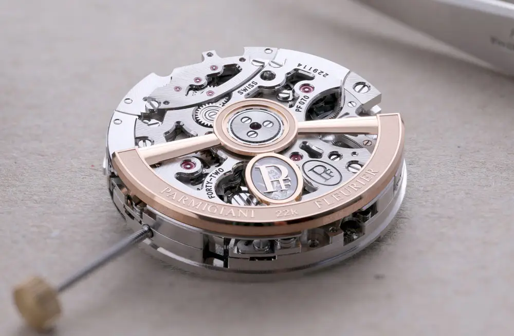 Bên trong là bộ máy tự động PF070 do chính hãng sản xuất, một bộ máy chronograph tích hợp với tần số cao 5 Hz (36.000 vph) và chứng nhận COSC. Bộ máy này cung cấp dự trữ năng lượng 65 giờ và có thiết kế mỏng gọn (độ dày bộ máy 6,95 mm). Bộ máy được trang trí tinh xảo, bao gồm rotor lộ cơ bằng vàng hồng 22K, và hoàn toàn lộ ra qua kính sapphire.