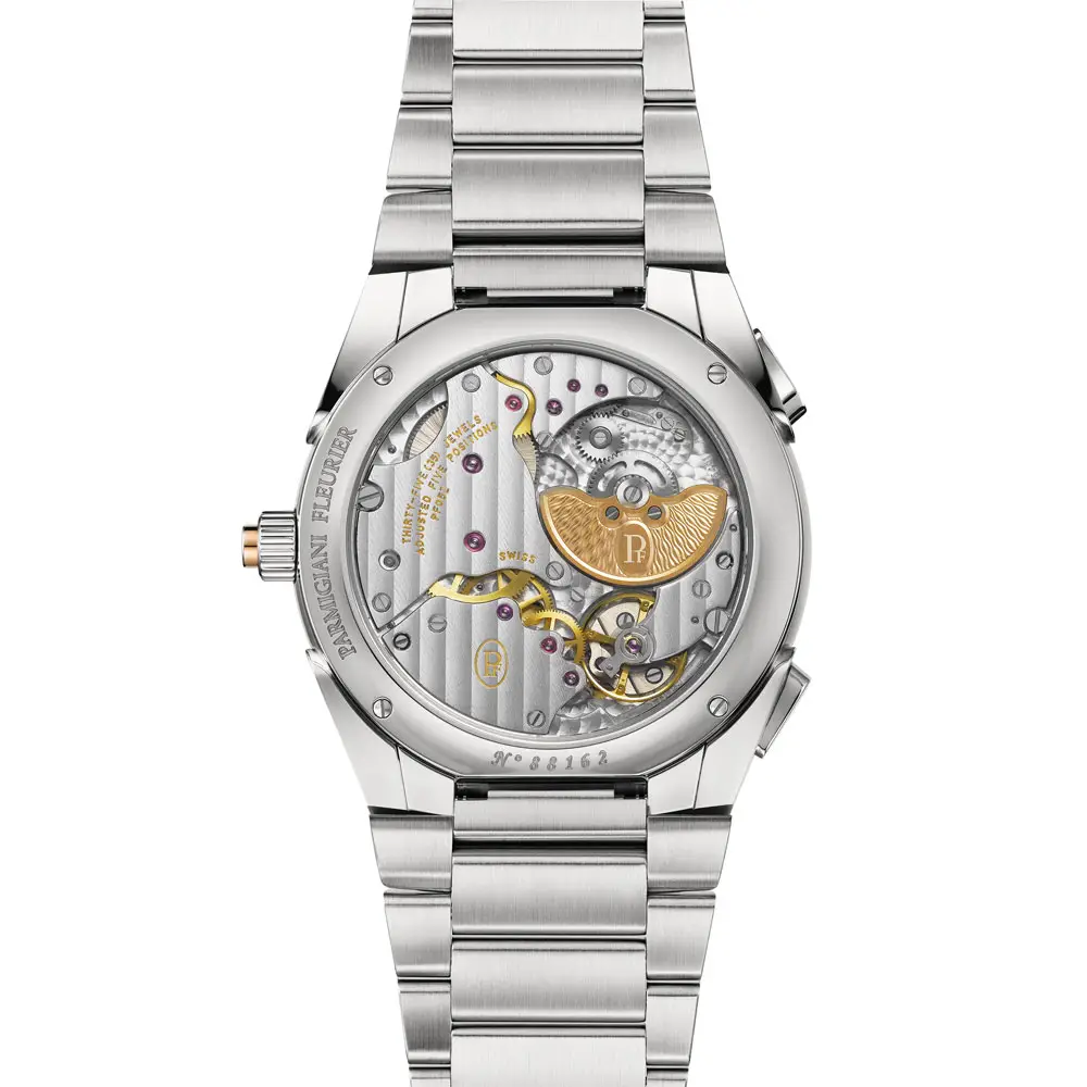 Bên trong là bộ máy tự động PF052 do nhà máy sản xuất, có dự trữ năng lượng 48 giờ, rotor vi mô bằng vàng 22K và khả năng chống nước lên đến 60m. Mẫu đồng hồ này là lựa chọn lý tưởng cho những ai tìm kiếm cơ chế cơ học cao cấp, tính năng phức tạp độc đáo và sự sang trọng tinh tế trong thiết kế hiện đại.
