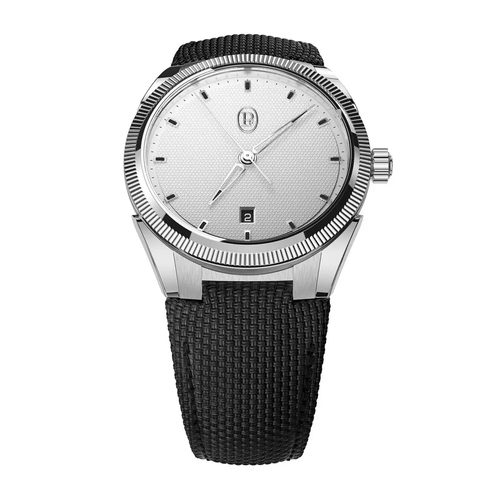 Parmigiani Tonda PF Sport Automatic kết hợp giữa sự năng động thể thao và sang trọng. Vỏ thép không gỉ 41 mm được trang trí với viền bezel được gia công tinh xảo và mặt số bạc sang trọng với hoa văn guilloché, cùng các chỉ số phát quang và kim hình delta cho độ hiển thị tuyệt vời.