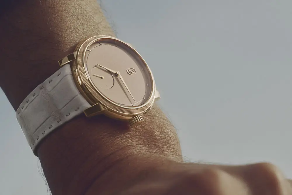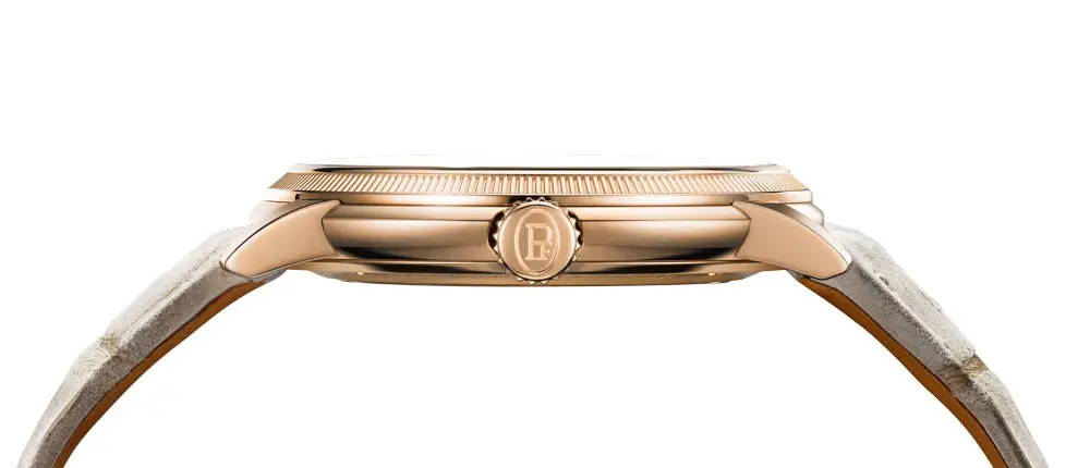 Đồng hồ đi kèm dây da cá sấu nubuck màu “Sand Gold” cùng khóa vàng hồng. Với độ dày chỉ 8,8 mm và khả năng chống nước 30 m, đây là lựa chọn hoàn hảo cho những ai trân trọng sự kết hợp giữa tay nghề truyền thống và phong cách sang trọng hiện đại.