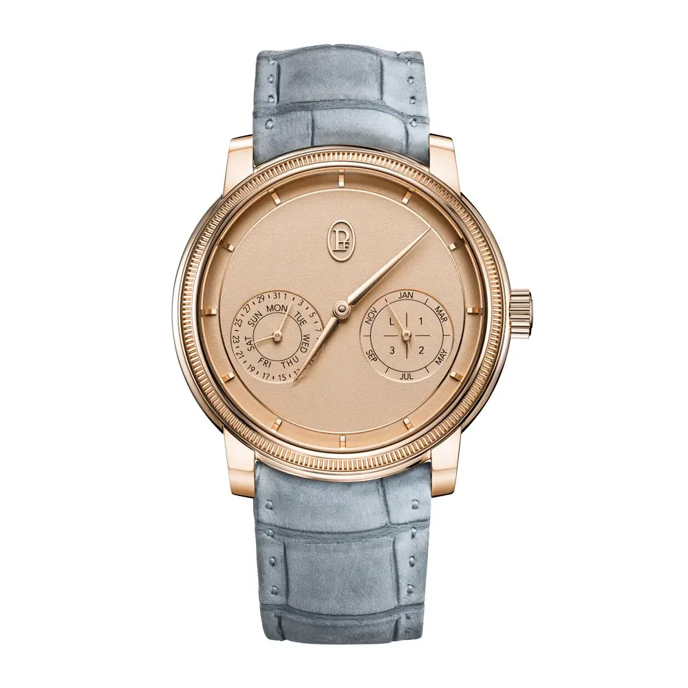 Bộ máy sản xuất in-house PF733 lên cót tay, gồm 265 chi tiết và 29 chân kính. Hoạt động ở tần số 4 Hz, mang lại 60 giờ dự trữ năng lượng. Chức năng lịch vạn niên hiển thị ngày, thứ, tháng và năm nhuận qua hai mặt số phụ tại vị trí 4 giờ và 8 giờ, đảm bảo cân đối và dễ quan sát.