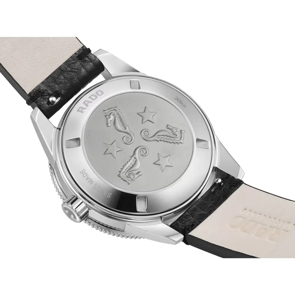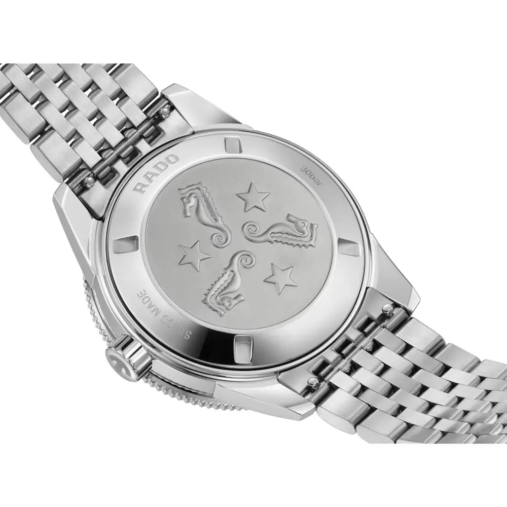 Bên trong là bộ máy tự động Rado R763 với thời gian trữ cót lên đến 80 giờ. Công nghệ Nivachron™ giúp tăng khả năng chống từ. Lựa chọn lý tưởng cho nam giới tìm kiếm đồng hồ lặn thể thao và đáng tin cậy.