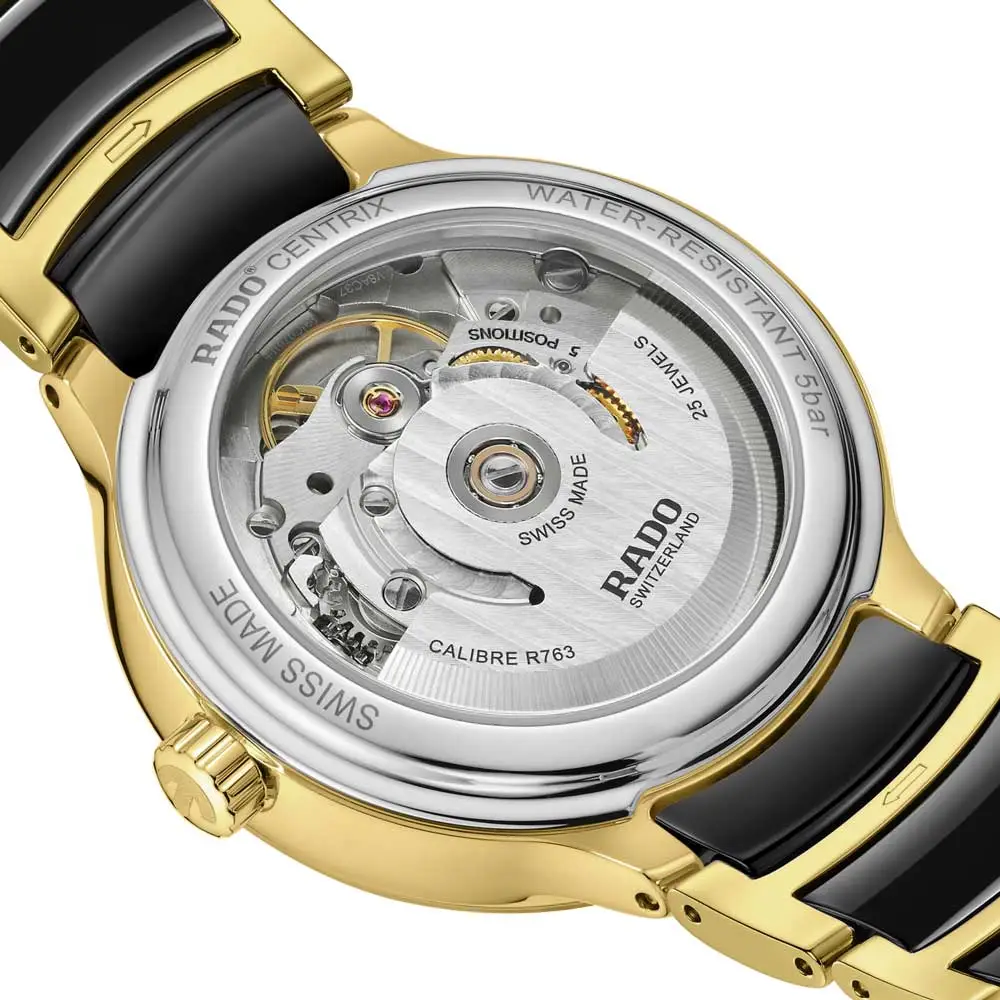 Rado Centrix Automatic Diamonds R30032742 là sự hòa quyện tinh tế giữa sự sang trọng, độ chính xác Thụy Sĩ và nét nữ tính thanh lịch. Thuộc bộ sưu tập Centrix, đồng hồ kết hợp thép không gỉ và lớp phủ PVD vàng hồng, mang phong cách hiện đại và vượt thời gian. Vỏ 30,5 mm kết hợp hoàn hảo với dây đeo thép – gốm liền mạch, đặc trưng của Rado.