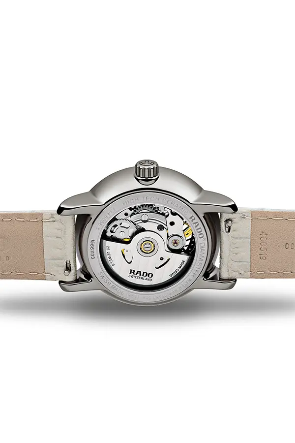 Dây da với khóa gài cổ điển mang lại cảm giác thoải mái và thanh lịch. Rado DiaMaster Automatic Open Heart Diamonds R14056935 là biểu tượng của tay nghề Thụy Sĩ, sự sang trọng tinh tế và đẳng cấp vượt thời gian, dành cho người phụ nữ hiện đại yêu thích vẻ đẹp và sự hoàn hảo.