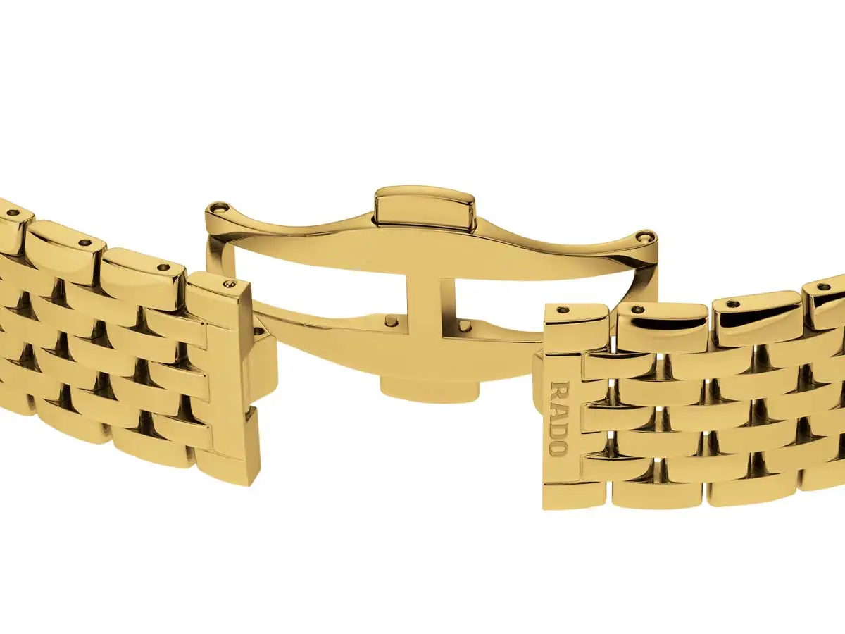 Rado Florence Diamonds R48914703 là sự kết hợp giữa nét thanh lịch cổ điển, chế tác tinh xảo và chi tiết sang trọng. Vỏ tròn 38 mm được làm từ thép không gỉ mạ vàng vàng, hài hòa với dây đeo thép màu vàng thanh lịch. Thiết kế hài hòa này được nổi bật bởi mặt số màu đen đính kim cương, mang lại vẻ ngoài đẳng cấp.