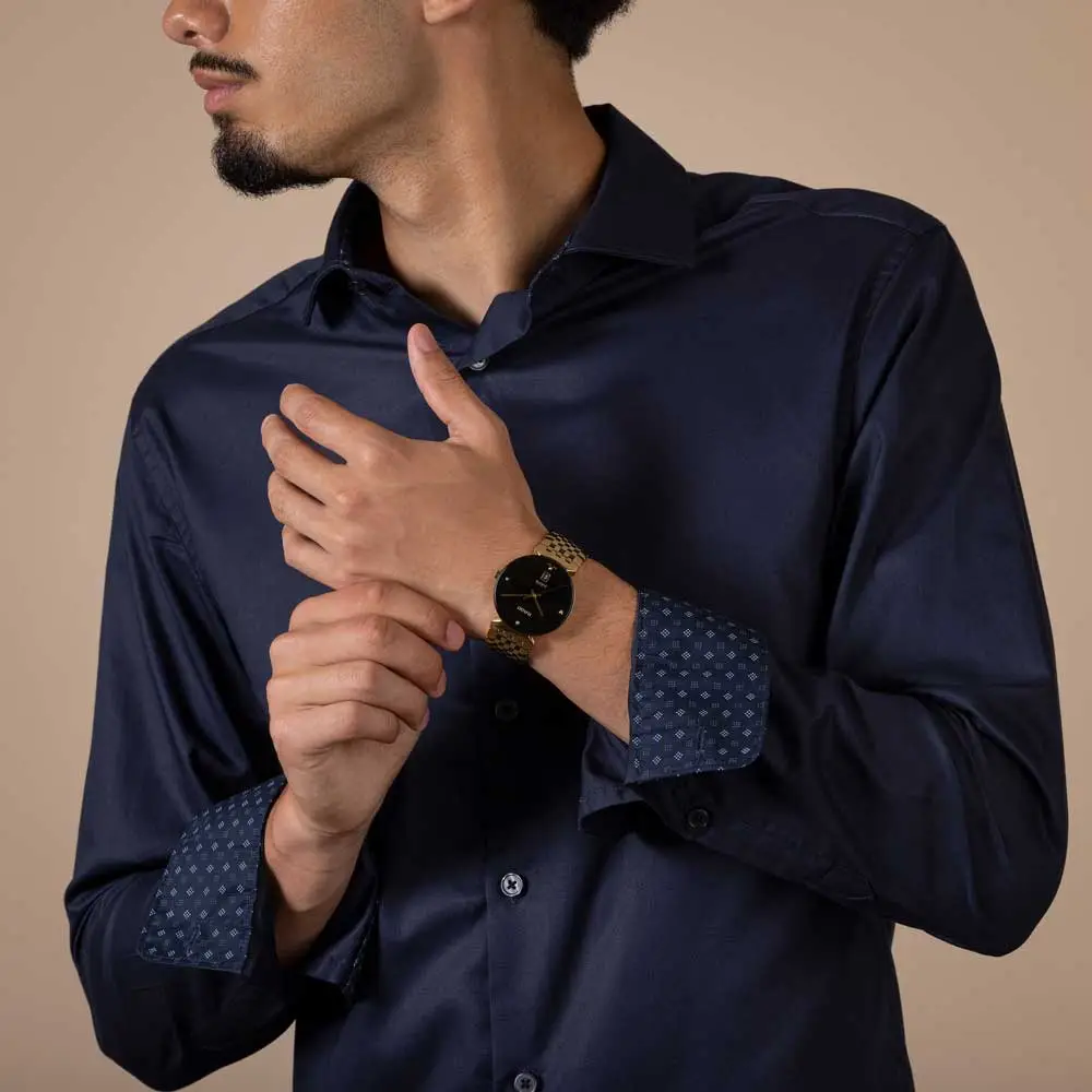 Kính sapphire bảo vệ mặt số khỏi trầy xước tối đa. Lịch ngày tại vị trí 6 giờ được tích hợp khéo léo, không phá vỡ vẻ đẹp tổng thể. Khóa gập đảm bảo việc đeo an toàn và thoải mái.