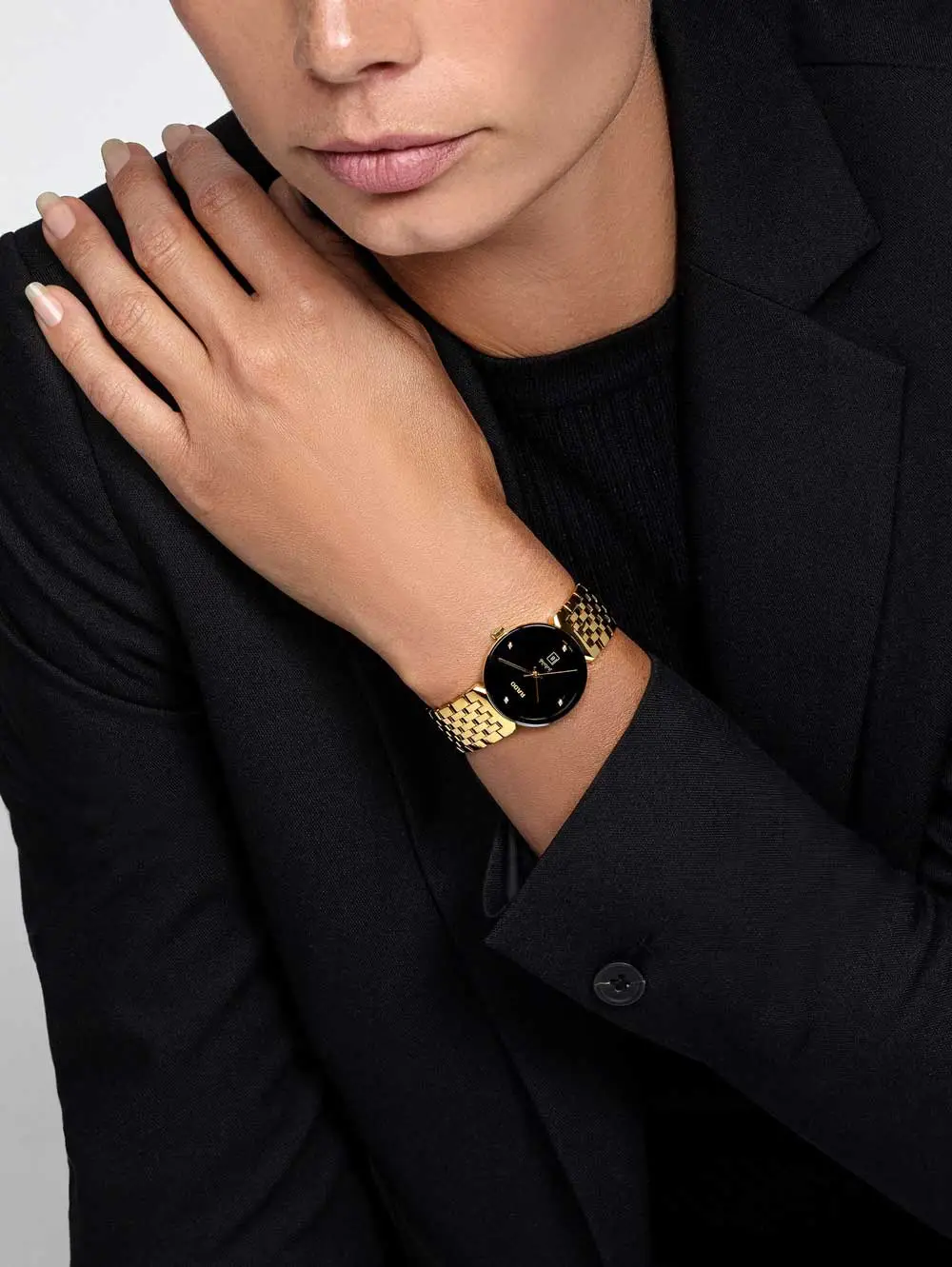 Rado Florence Diamonds R48915703 là hiện thân của sự tinh tế và thanh lịch trong một thiết kế nhỏ gọn nhưng nổi bật. Vỏ tròn kích thước 30 mm được làm từ thép không gỉ mạ vàng PVD, kết hợp với dây đeo thép cùng tông màu vàng, tạo nên vẻ sang trọng và hài hòa – lý tưởng cho cả ngày thường lẫn dịp trang trọng.