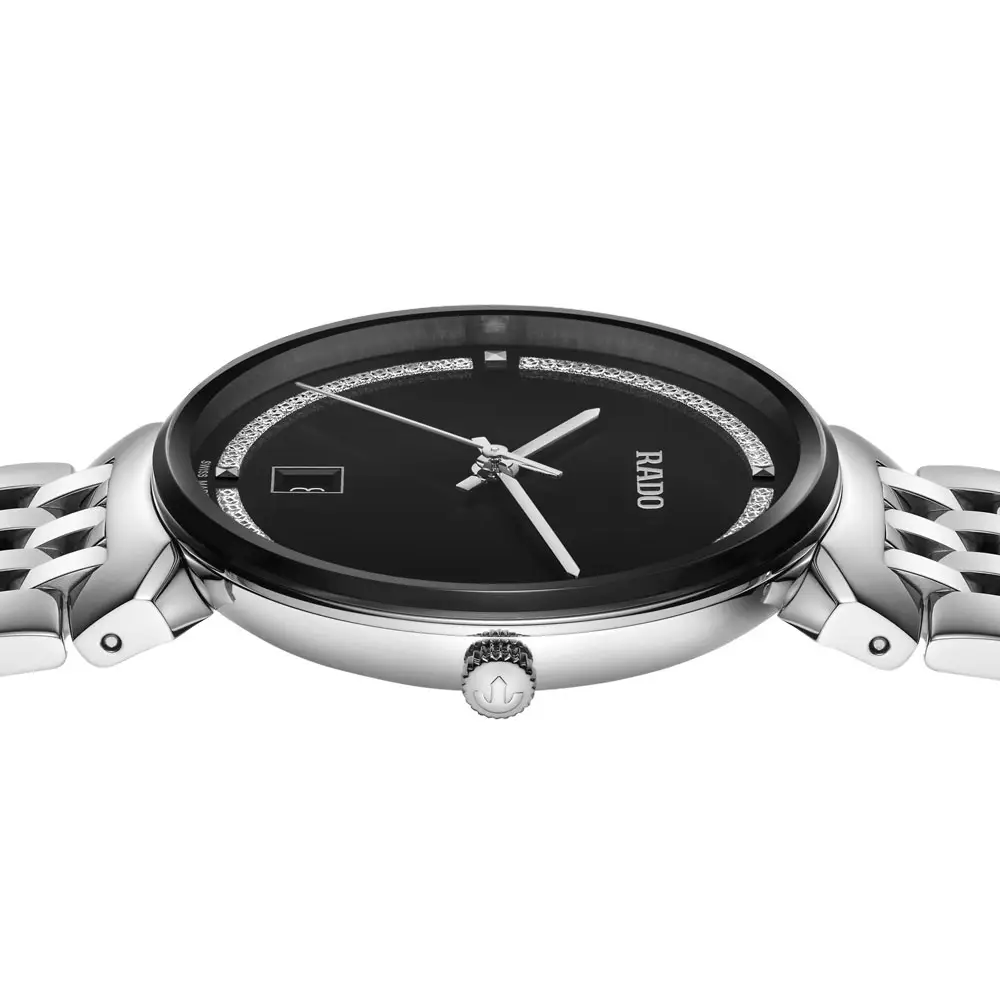 Rado Florence R48912163 mang đến vẻ đẹp thanh lịch hàng ngày nhờ phong cách cổ điển và chất lượng chế tác Thụy Sĩ đỉnh cao. Vỏ thép không gỉ tròn 38 mm, kết hợp với mặt số màu đen kiểu analog, tạo nên vẻ ngoài tinh tế, phù hợp cho cả dịp trang trọng lẫn đời thường.