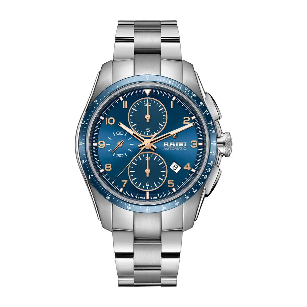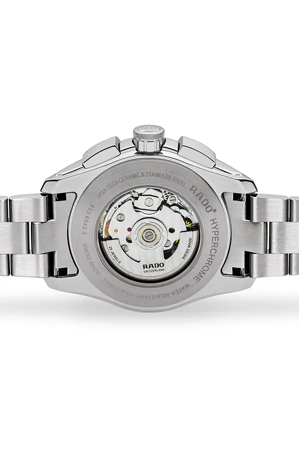 Dây đeo thép không gỉ kết hợp titan với khóa gập kiểu butterfly mang lại cảm giác chắc chắn và thoải mái. Mặt lưng trong suốt cho phép chiêm ngưỡng chuyển động tinh xảo của bộ máy. Rado HyperChrome Automatic Chronograph R32042203 là lựa chọn hoàn hảo cho quý ông yêu thích sức mạnh, sự thanh lịch và hiệu suất vượt trội.