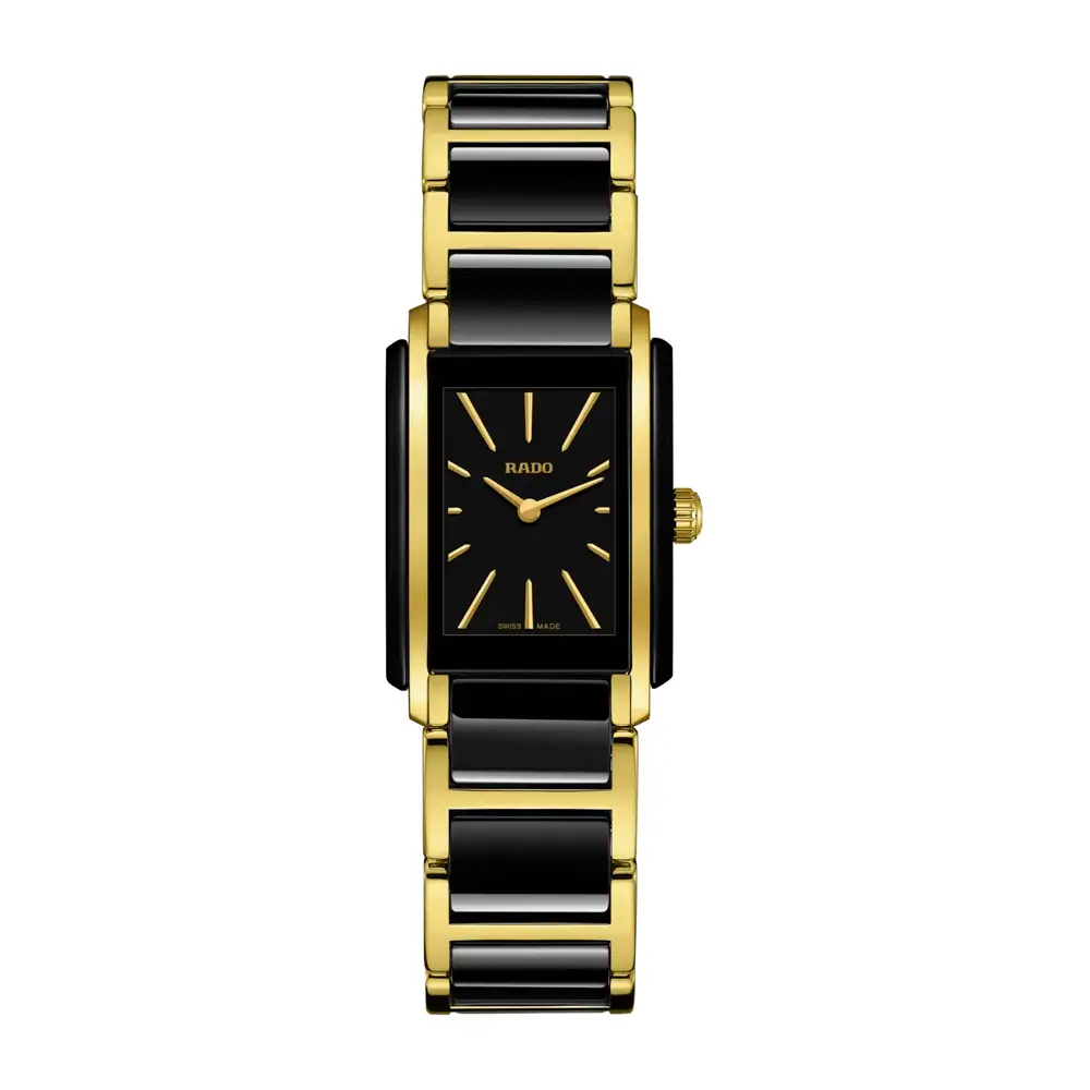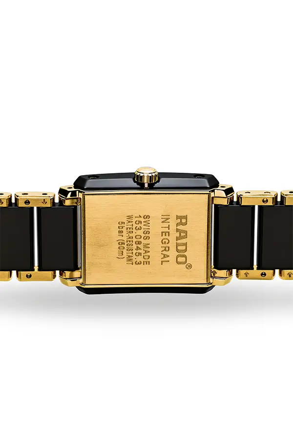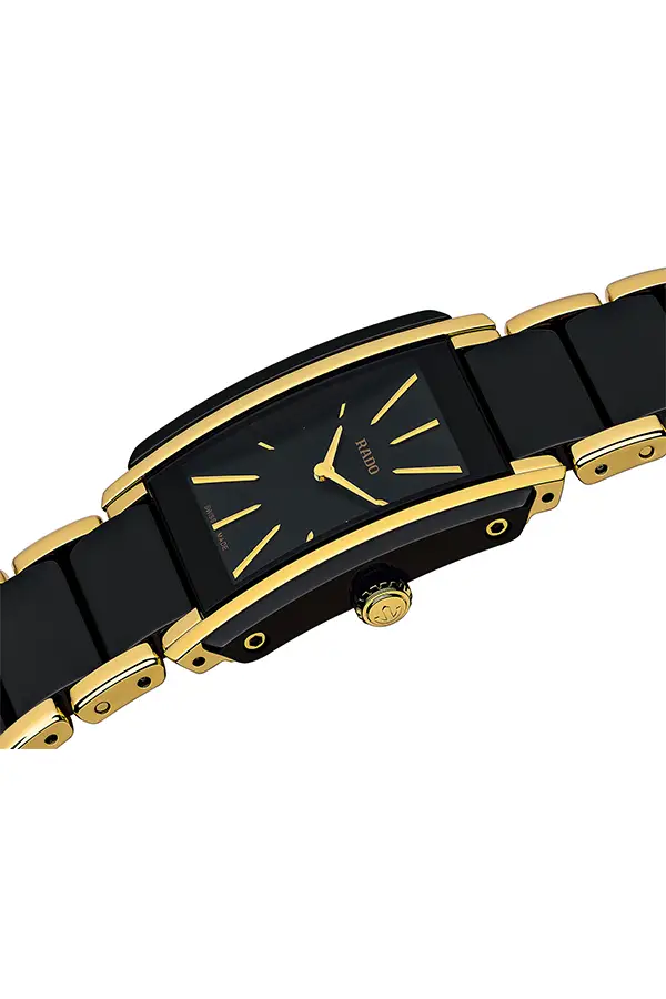 Rado Integral R20845162 là mẫu đồng hồ unisex thanh lịch, kết hợp giữa thiết kế hiện đại, chất liệu cao cấp và kỹ thuật chế tác tinh xảo. Vỏ đồng hồ hình chữ nhật kích thước 22,7 × 33,1 mm được làm từ sự kết hợp giữa gốm công nghệ cao, thép không gỉ và lớp mạ vàng, tạo nên vẻ ngoài sang trọng và độ bền vượt trội.