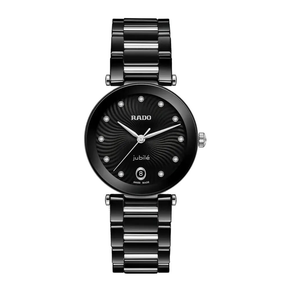 Đồng hồ được trang bị dây đeo bằng gốm cao cấp màu đen kết hợp với các chi tiết bằng thép không gỉ và khóa gấp ba lớp để mang thoải mái và an toàn. Rado LaCoupole Diamonds là sự lựa chọn hoàn hảo cho những phụ nữ tìm kiếm sự kết hợp giữa thẩm mỹ vượt thời gian, độ chính xác kỹ thuật và ánh sáng lấp lánh của kim cương.