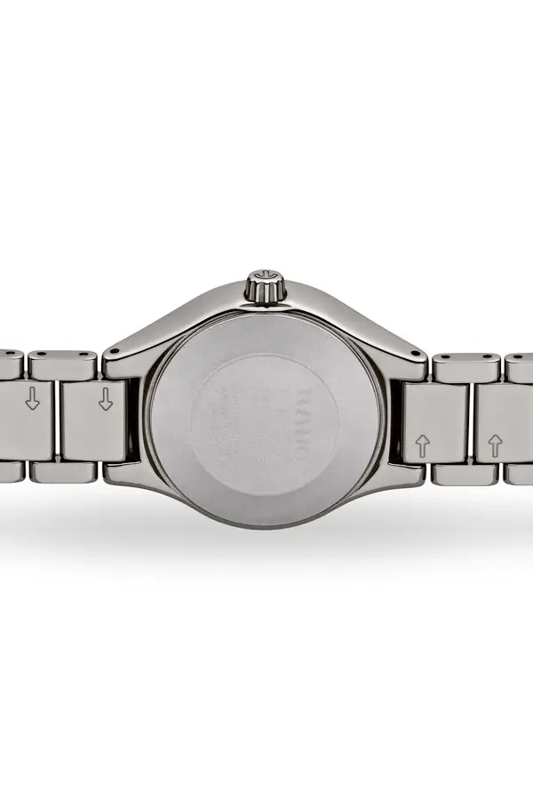 Dây đeo bằng gốm plasma và titan liền mạch với vỏ, mang lại cảm giác đeo nhẹ và thoải mái. Khóa gập an toàn giúp cố định chắc chắn. Rado True Automatic Diamonds R27243712 là biểu tượng của vẻ đẹp vượt thời gian, tay nghề tinh xảo và sự sang trọng tinh tế, xứng đáng là món trang sức đẳng cấp trên cổ tay.