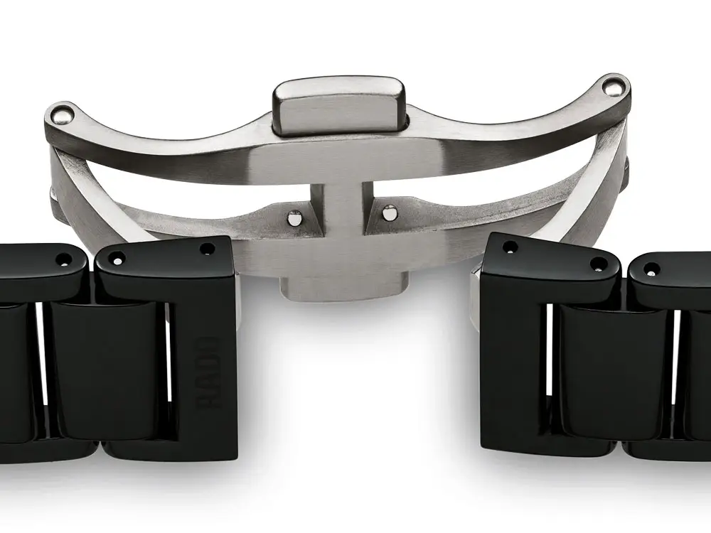 Mặt số analog màu đen với thiết kế tối giản đem lại khả năng xem giờ rõ ràng, trong khi kính sapphire giúp bảo vệ khỏi các tác động hàng ngày. Dây đeo gốm đen đồng màu hoàn thiện thiết kế tổng thể cao cấp, đi kèm với khóa gập để đảm bảo độ chắc chắn và thoải mái khi đeo.