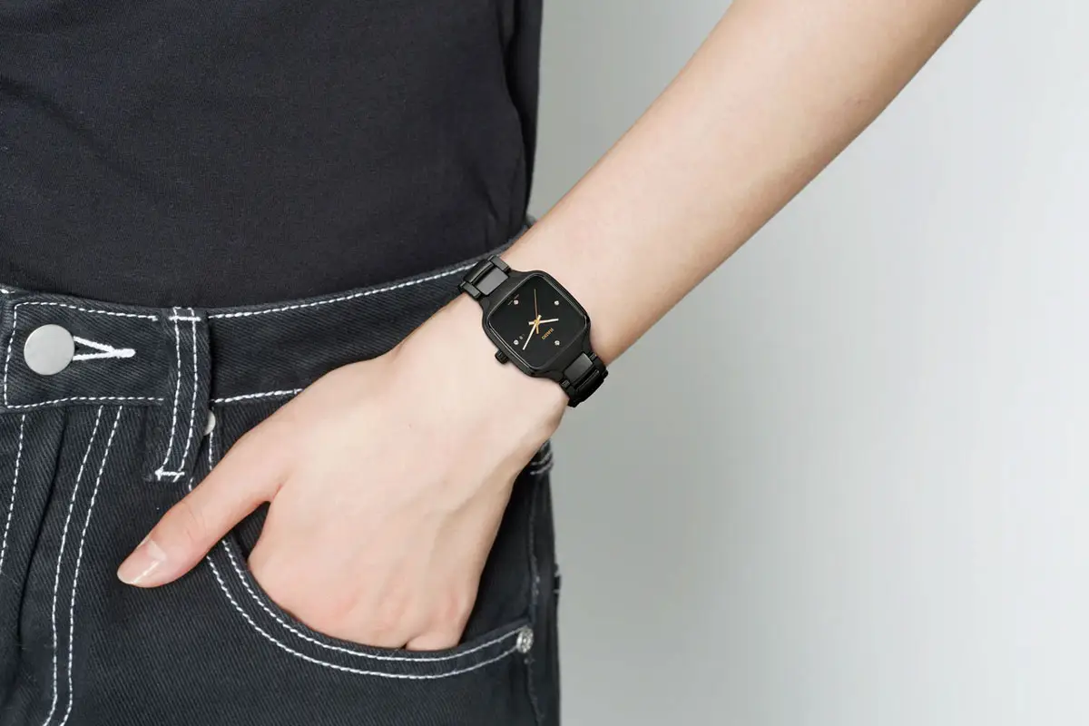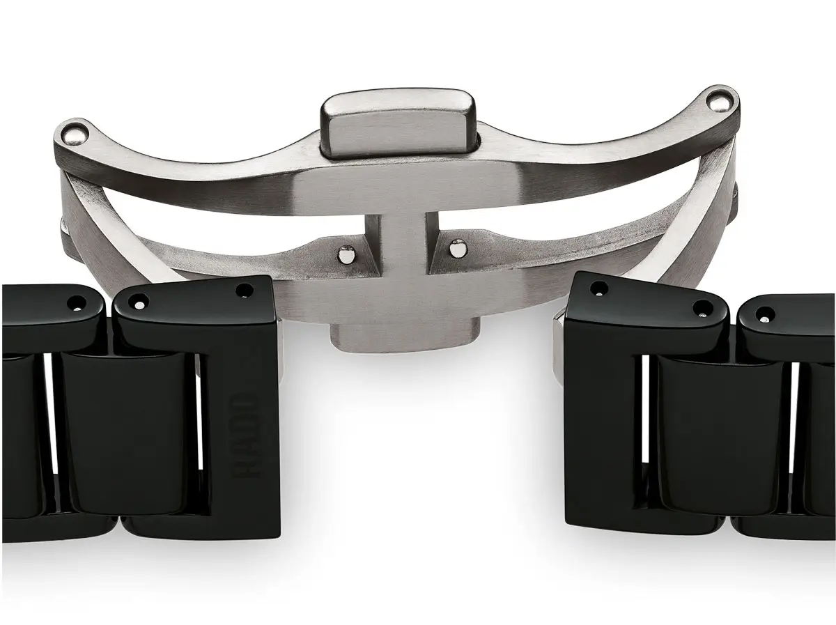 Dây đeo gốm màu đen đi kèm với khóa gập, giúp ôm tay thoải mái và an toàn. Với khả năng chống nước 5 ATM (50 mét), đồng hồ thích hợp cho việc sử dụng hàng ngày, bao gồm cả tiếp xúc với nước nhẹ.