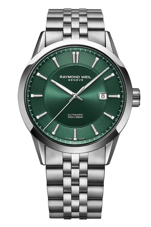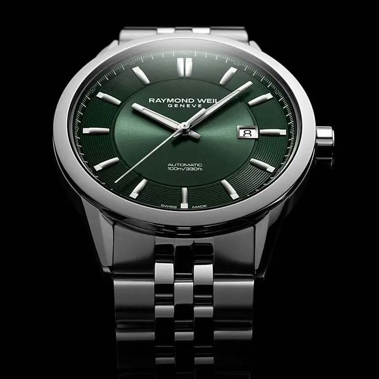 Raymond Weil Freelancer 2731-ST-52001 là đồng hồ thanh lịch và tinh tế từ bộ sưu tập Freelancer, được thiết kế cho người đàn ông hiện đại, người đánh giá cao phong cách và độ chính xác. Đồng hồ có vỏ thép không gỉ đường kính 42 mm và mặt số màu xanh lá cây bắt mắt, được bảo vệ bởi kính sapphire chống trầy xước. Chúng được trang bị bộ máy tự động Thụy Sĩ Sellita SW200-1 với thời gian dự trữ năng lượng khoảng 38 giờ. Tại vị trí 3 giờ, có một chức năng ngày thực tế.