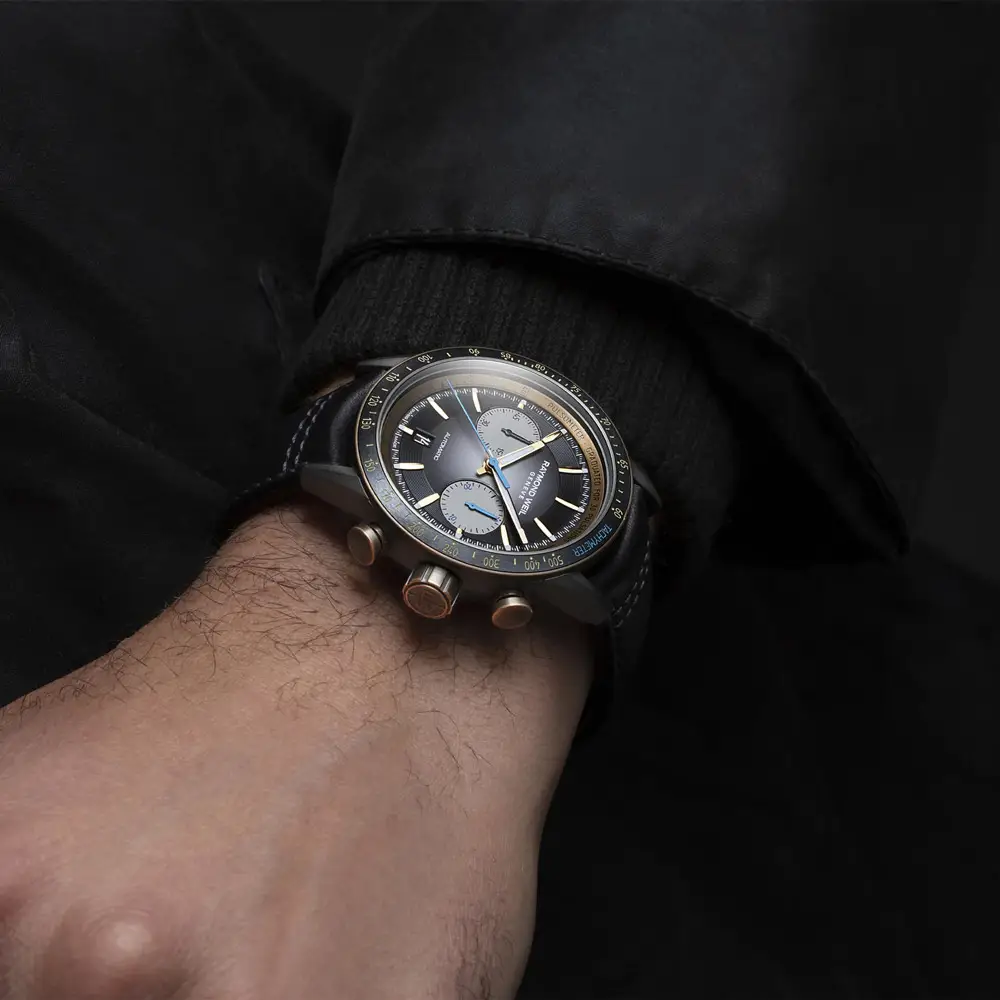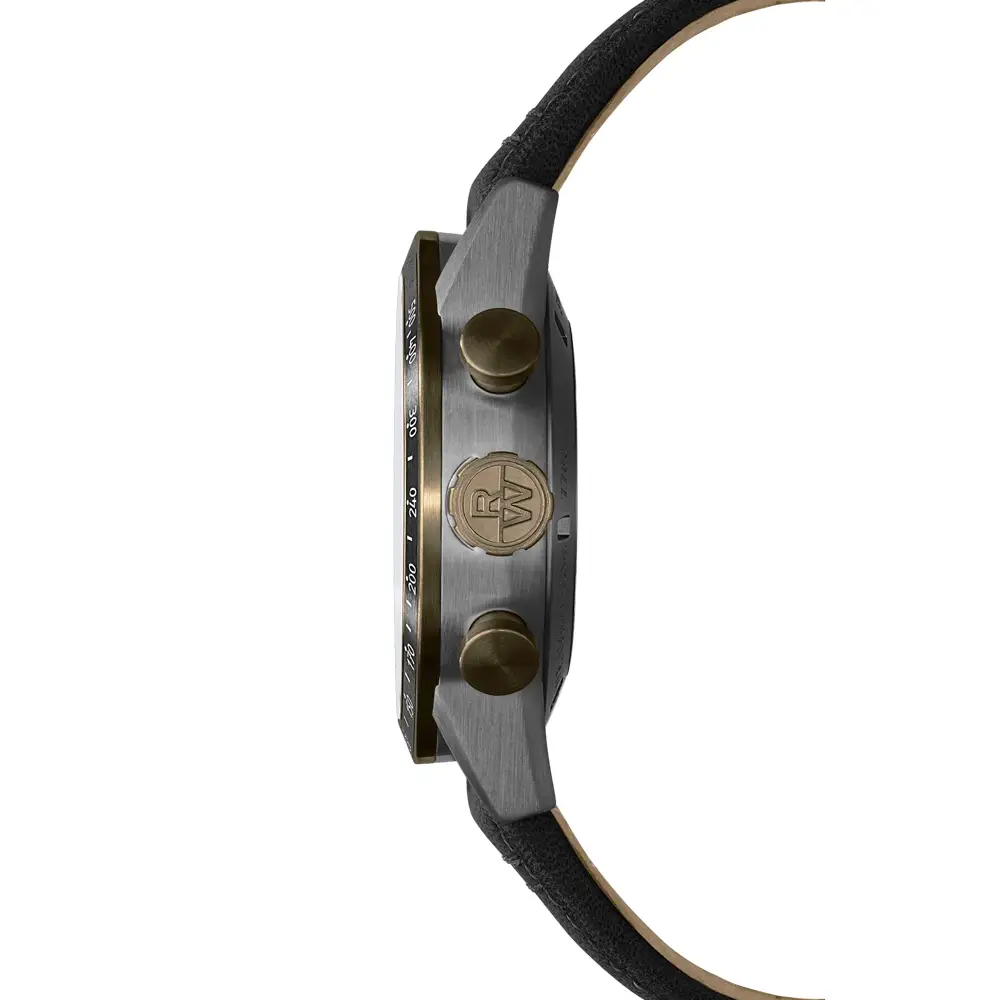 Bên trong là bộ máy cơ tự động RW5030 với dự trữ năng lượng 62 giờ, có thể quan sát qua nắp lưng sapphire trong suốt. Chức năng chronograph được bổ sung thang đo tachymeter, thang đo nhịp tim, và lịch ngày ở vị trí 6 giờ. Đồng hồ có khả năng chống nước 100 m và núm vặn khóa, đảm bảo độ bền và hiệu suất cao.