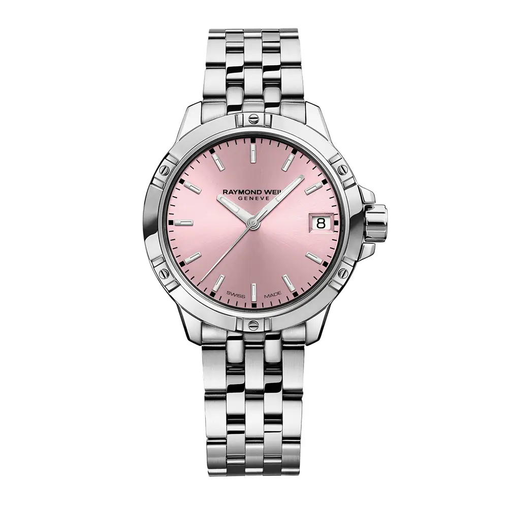 Raymond Weil Tango 5960-ST-80001 là chiếc đồng hồ thể hiện vẻ đẹp thanh lịch Thụy Sĩ, sự nữ tính và thiết kế tinh tế. Vỏ đồng hồ 30 mm bằng thép không gỉ được điểm xuyết bằng vành bezel có ốc vít đặc trưng của bộ sưu tập Tango, mang đến vẻ ngoài sang trọng và cân đối.