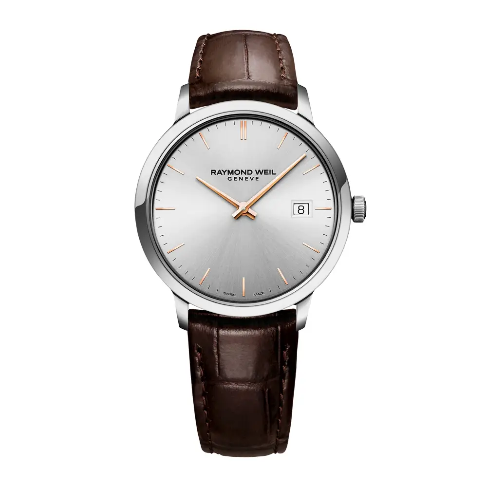 Dây da màu nâu với khóa cài cổ điển tạo nên sự hài hòa với tông ấm của mặt số, mang đến vẻ sang trọng tinh tế. Raymond Weil Toccata 5488-SL5-65001 là lựa chọn lý tưởng cho quý ông yêu thích phong cách thanh lịch, đẳng cấp nhẹ nhàng và tay nghề Thụy Sĩ đích thực.