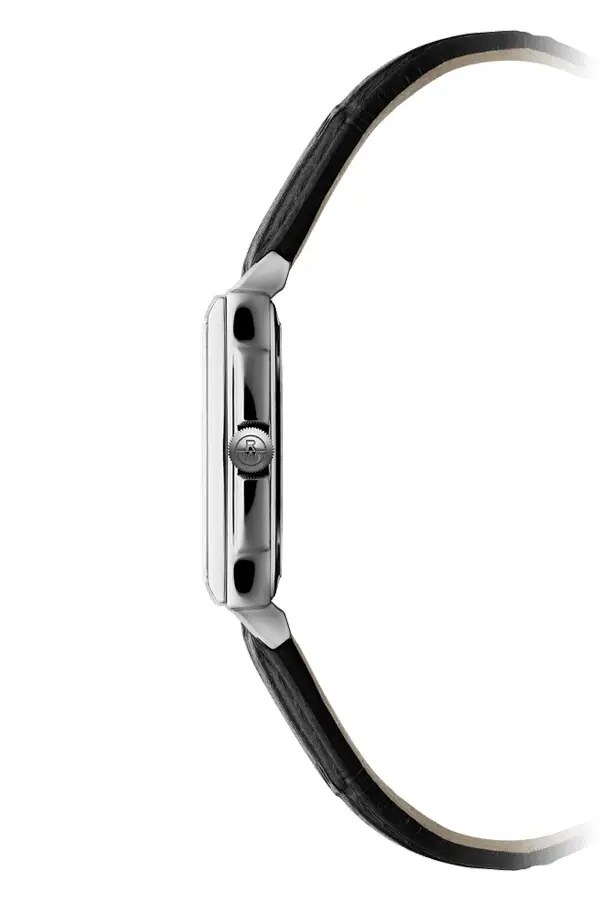 Raymond Weil Toccata 5925-STC-00295 mang đậm phong cách Art-Deco, vẻ nữ tính và sự thanh lịch vượt thời gian. Vỏ đồng hồ hình chữ nhật bằng thép không gỉ (22,6 × 28,1 mm) với độ dày chỉ 6,4 mm tạo nên dáng vẻ tinh tế trên cổ tay. Vành bezel đánh bóng bao quanh mặt số đen sang trọng, được đính cọc số kim cương và chữ số La Mã, mang đến vẻ đẹp quý phái và hiện đại.