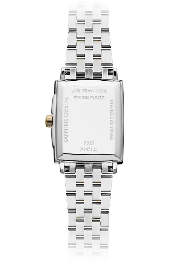 Dây thép hai tông màu kết hợp vàng PVD với khóa gập đôi an toàn, đảm bảo độ chắc chắn và thoải mái. Raymond Weil Toccata 5925-STP-00995 là biểu tượng của vẻ đẹp thanh lịch, sự sang trọng vĩnh cửu và tay nghề chế tác Thụy Sĩ đích thực.