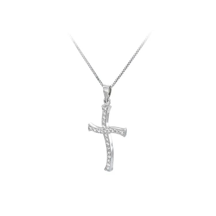 Thánh giá bằng vàng trắng đính đá zircon