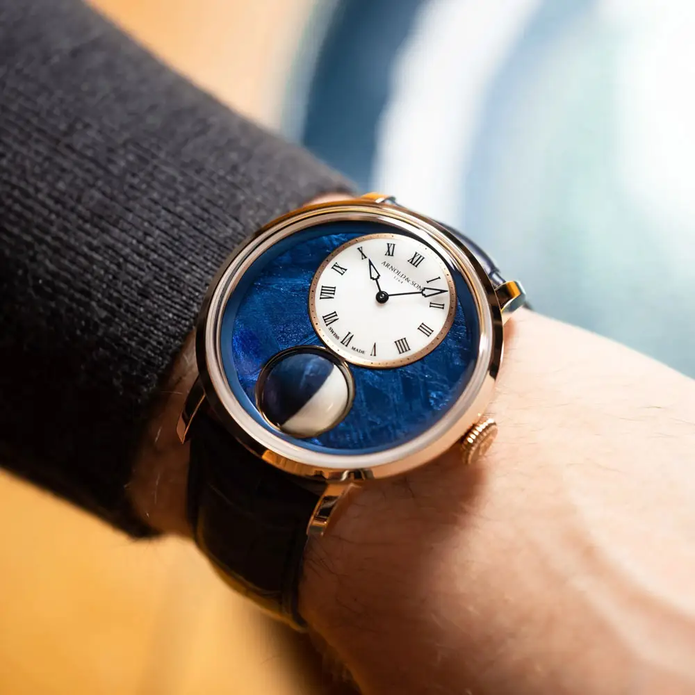 Điểm nhấn là mặt trăng xoay 3D được cấu thành từ opal Cacholong và thiên thạch PVD xanh. Bộ máy được điều khiển bởi caliber A&S1021, với dự trữ năng lượng lên đến 90 giờ, độ lệch của lịch mặt trăng chỉ là một ngày trong suốt 122 năm.
