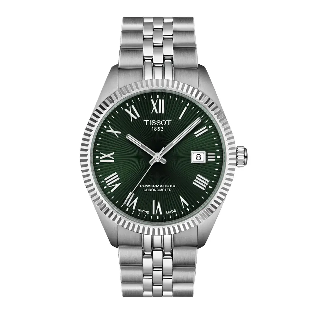Mặt số xanh lá với họa tiết tinh tế, số La Mã và ô lịch nhỏ tạo nên bố cục thanh lịch và cân đối. Viền bezel dạng rãnh tăng chiều sâu và cá tính, trong khi dây thép không gỉ góp phần tạo nên vẻ ngoài cao cấp. Sự kết hợp giữa xanh lá và thép mang đến diện mạo hài hòa, phù hợp trong cả môi trường trang trọng lẫn đời thường.