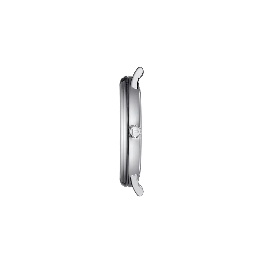 Đồng hồ nam Tissot Carson Premium Moonphase T122.423.11.033.00 thể hiện vẻ đẹp thanh lịch cổ điển và phong cách Thụy Sĩ vượt thời gian. Vỏ tròn bằng thép không gỉ đường kính 40 mm mang đến sự cân đối và tinh tế, phù hợp cho cả những dịp trang trọng lẫn sử dụng hằng ngày. Các đường nét gọn gàng làm nổi bật phong cách truyền thống của bộ sưu tập T-Classic.