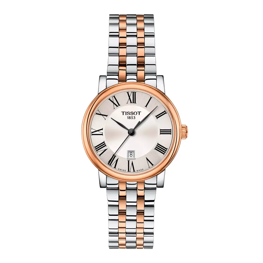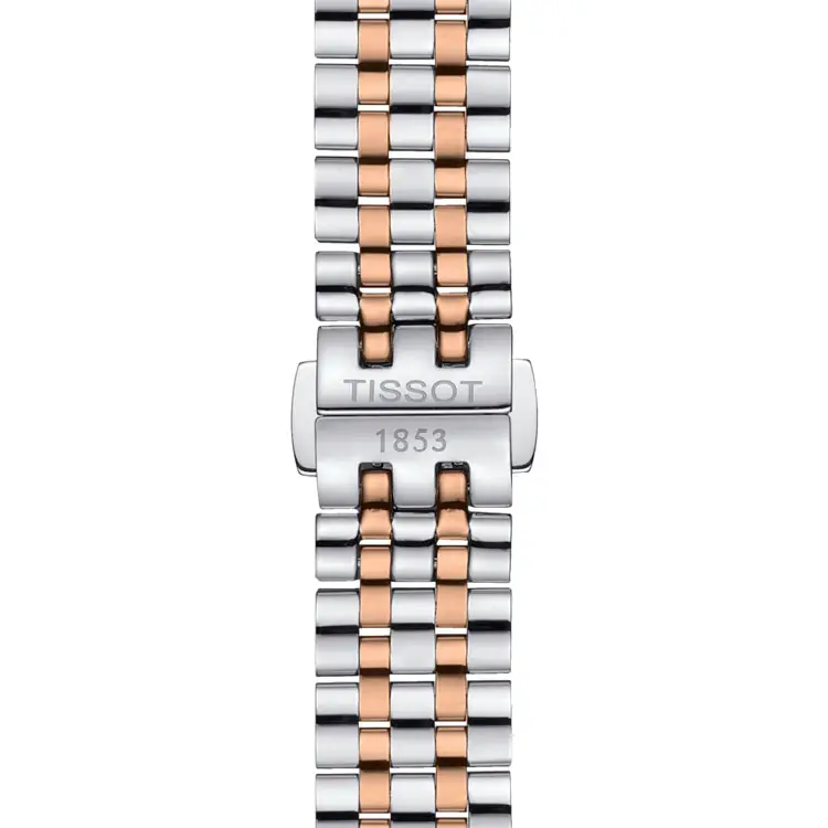 Dây thép hai tông màu với mắt vàng hồng PVD cùng khóa gập đôi dạng bướm có nút bấm, tạo nên sự chắc chắn và tiện lợi. Tissot Carson Premium Lady T122.210.22.033.01 là lựa chọn lý tưởng cho quý cô yêu thích vẻ đẹp vượt thời gian, sự sang trọng tinh tế và tay nghề chế tác Thụy Sĩ đích thực.
