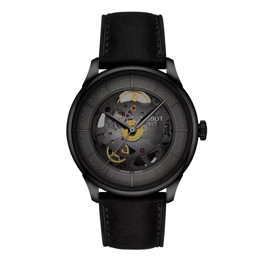 Tissot Chemin des Tourelles Squelette mang đến một góc nhìn hiện đại và ấn tượng về nghệ thuật chế tác đồng hồ Thụy Sĩ truyền thống. Mặt số skeleton mở cho phép quan sát bộ máy bên trong, tôn lên vẻ đẹp kỹ thuật của từng chi tiết. Thiết kế thanh lịch đi cùng vỏ 39 mm bằng thép không gỉ 316L phủ PVD đen, tạo nên phong cách hài hòa giữa cổ điển và hiện đại.