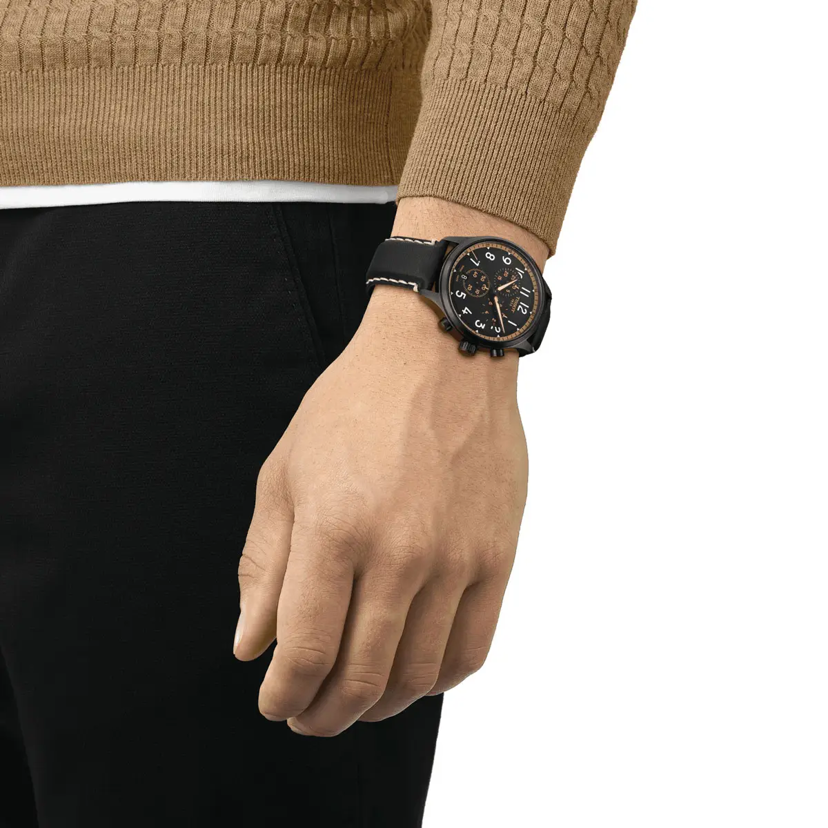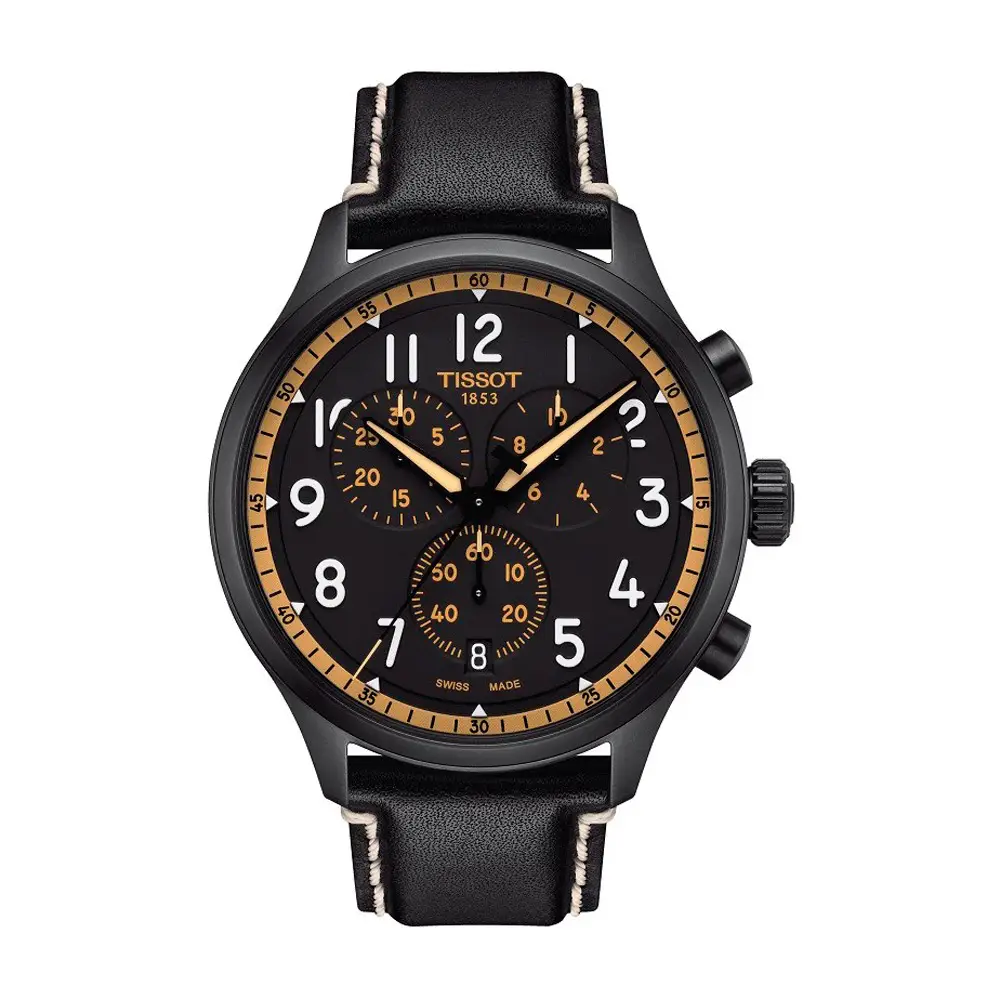 Tissot Chrono XL Vintage T116.617.36.052.02 là sự kết hợp tinh tế giữa phong cách cổ điển, vẻ mạnh mẽ và độ chính xác Thụy Sĩ. Vỏ thép không gỉ 45 mm phủ PVD đen đi kèm mặt số đen với ba mặt phụ chronograph và kim, cọc số màu be, tạo nên diện mạo retro sang trọng. Dây da nâu với đường chỉ nổi bật mang lại vẻ thanh lịch vượt thời gian.