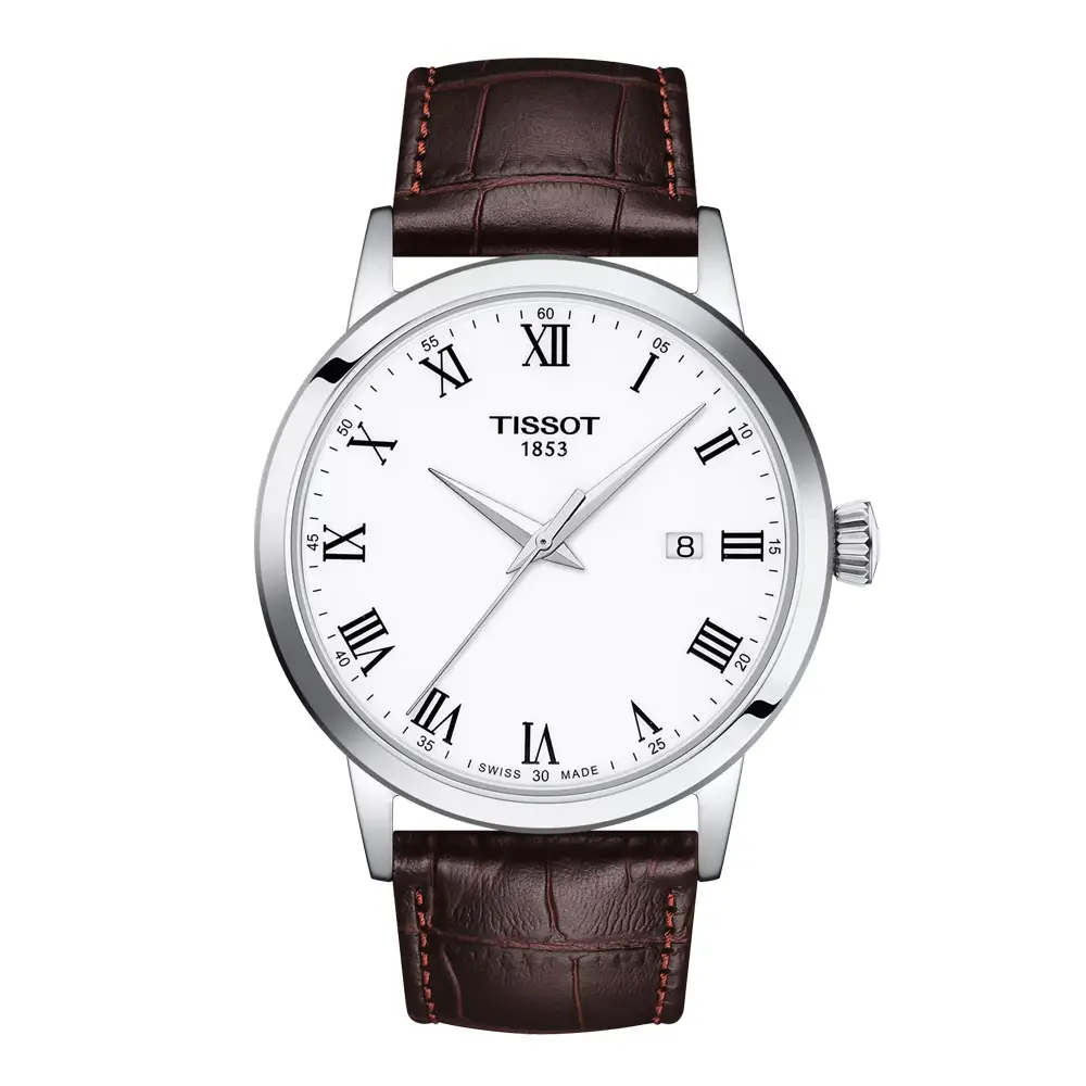 Tissot Classic Dream sở hữu vẻ đẹp trang nhã với đường nét tinh gọn và phong cách vượt thời gian. Vỏ thép 316L 42 mm kết hợp cùng mặt số trắng–bạc với chữ số La Mã và kim mảnh tạo nên vẻ lịch thiệp, sang trọng — lý tưởng cho công việc, sự kiện trang trọng hoặc phong cách thanh lịch mỗi ngày. Dây da nâu với khóa truyền thống hoàn thiện vẻ đẹp cổ điển của đồng hồ.