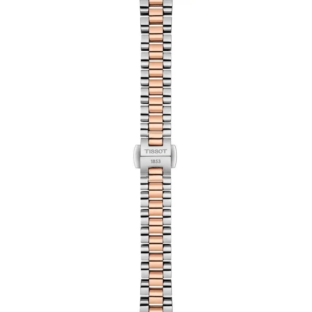 Dây đeo thép hai tông màu với điểm nhấn vàng hồng và khóa bướm có nút bấm mang lại sự thoải mái và an toàn. Tissot Desir là lựa chọn hoàn hảo cho phụ nữ yêu thích chất lượng Thụy Sĩ, thiết kế thanh lịch và phong cách vượt thời gian.
