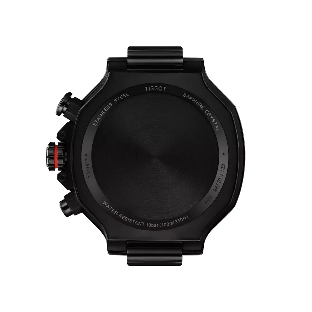 Đồng hồ Tissot T-Race Quartz Chronograph T141.417.37.061.01 hoàn hảo kết hợp giữa phong cách thể thao và độ chính xác kỹ thuật. Vỏ đồng hồ bằng thép không gỉ 45mm với lớp hoàn thiện PVD đen nổi bật, được điểm xuyết bằng các chi tiết màu vàng hồng sang trọng, lấy cảm hứng từ những chiếc mô tô đua và sự động lực của chúng.