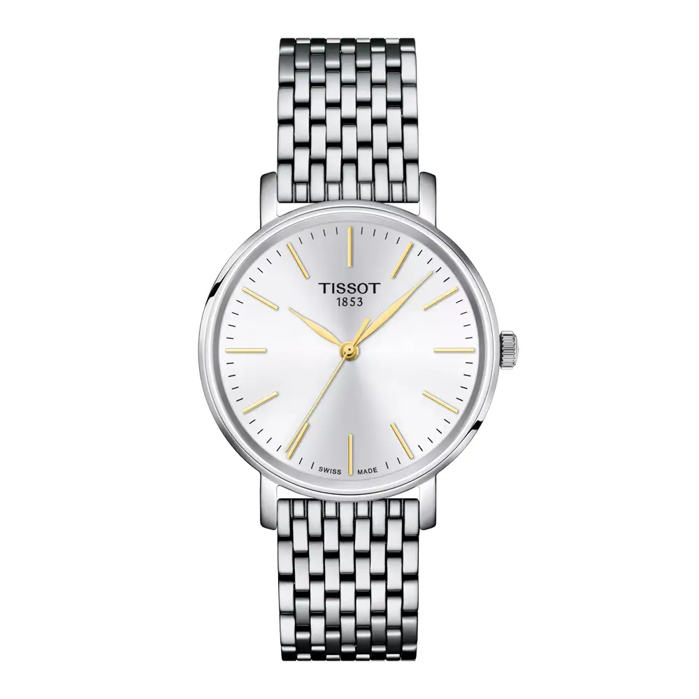 Đồng hồ nữ Tissot Everytime Lady T143.210.11.011.01 gây ấn tượng với thiết kế tối giản, tôn vinh vẻ đẹp thanh lịch vượt thời gian. Vỏ tròn bằng thép không gỉ đường kính 34 mm mang lại cảm giác tinh tế và cân đối, phù hợp cho cả sử dụng hằng ngày lẫn những dịp trang trọng. Kiểu dáng mỏng giúp mẫu đồng hồ này dễ dàng kết hợp với nhiều phong cách khác nhau.