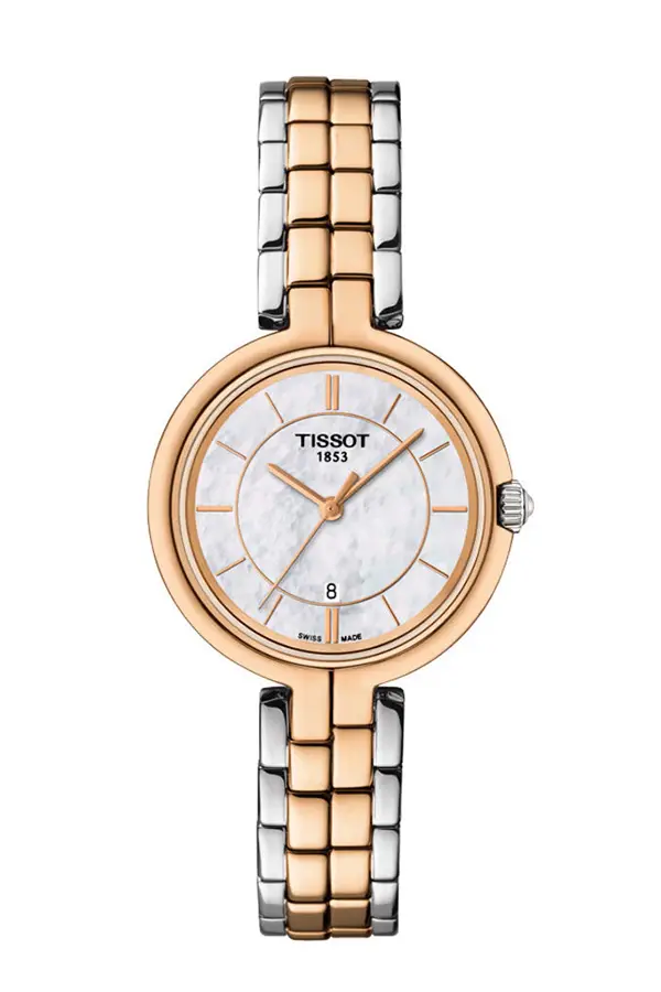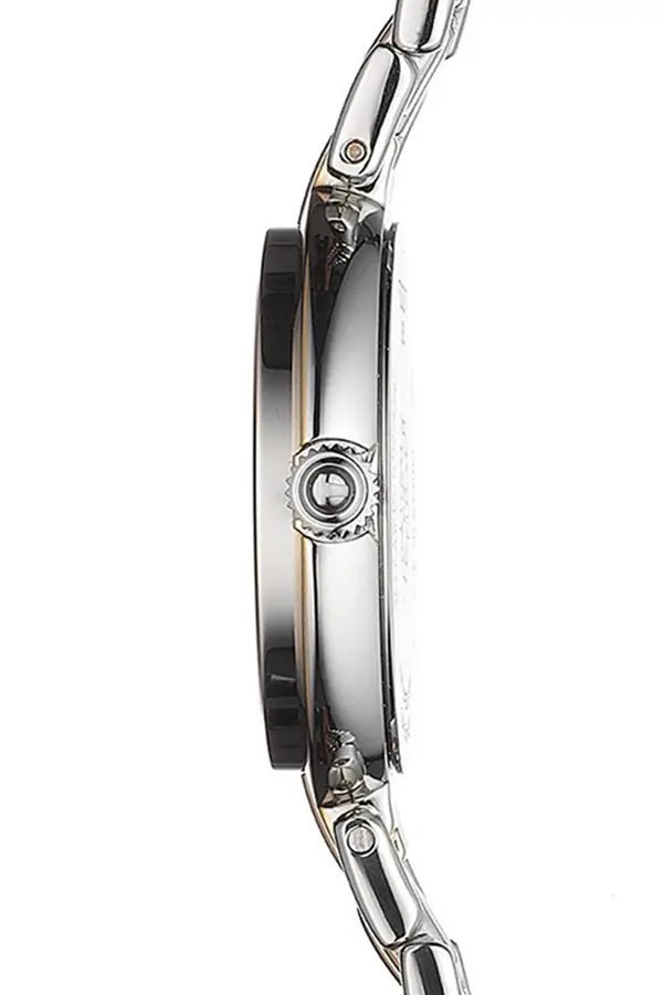 Một chiếc đồng hồ cổ điển với màu sắc độc đáo sẽ là điểm nhấn sang trọng trên cổ tay của mọi phụ nữ. Sự kết hợp giữa thép bạc và lớp mạ vàng hồng là xu hướng của những năm gần đây. Mặt số analog bằng vàng được đặt trên nền ngọc trai. Núm vặn được thiết kế tinh xảo sẽ không gây trầy xước ngay cả với những trang phục làm từ chất liệu cao cấp. Mặt số được bảo vệ bởi kính sapphire bền bỉ nhất.