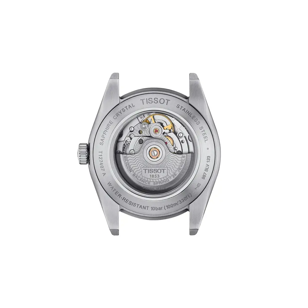Tissot Gentleman Powermatic 80 Silicium T127.407.16.031.01 mang đến sự kết hợp hoàn hảo giữa nét thanh lịch cổ điển và kỹ thuật hiện đại. Vỏ thép không gỉ 316L kích thước 40 mm tạo cảm giác mạnh mẽ nhưng cân đối trên cổ tay, trong khi mặt số bạc hiệu ứng sunburst mang lại vẻ tinh tế và vượt thời gian. Nắp lưng trong suốt cho phép người đeo ngắm nhìn chuyển động cơ học tinh xảo.
