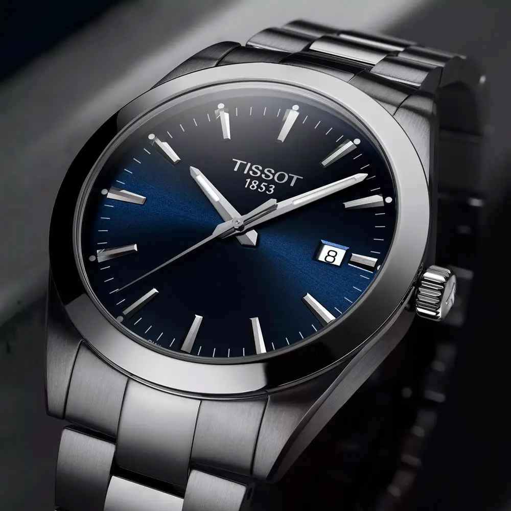 Tissot Gentleman T127.410.11.041.00 là sự kết hợp tinh tế giữa phong cách cổ điển, chức năng hiện đại và độ chính xác Thụy Sĩ. Vỏ thép không gỉ 40 mm đi kèm mặt số xanh lam với cọc số và kim đánh bóng, tôn lên vẻ sang trọng vượt thời gian. Lịch ngày tại vị trí 3 giờ mang lại sự tiện dụng hàng ngày.