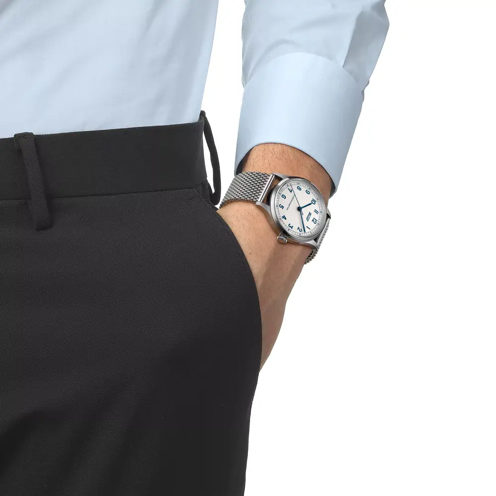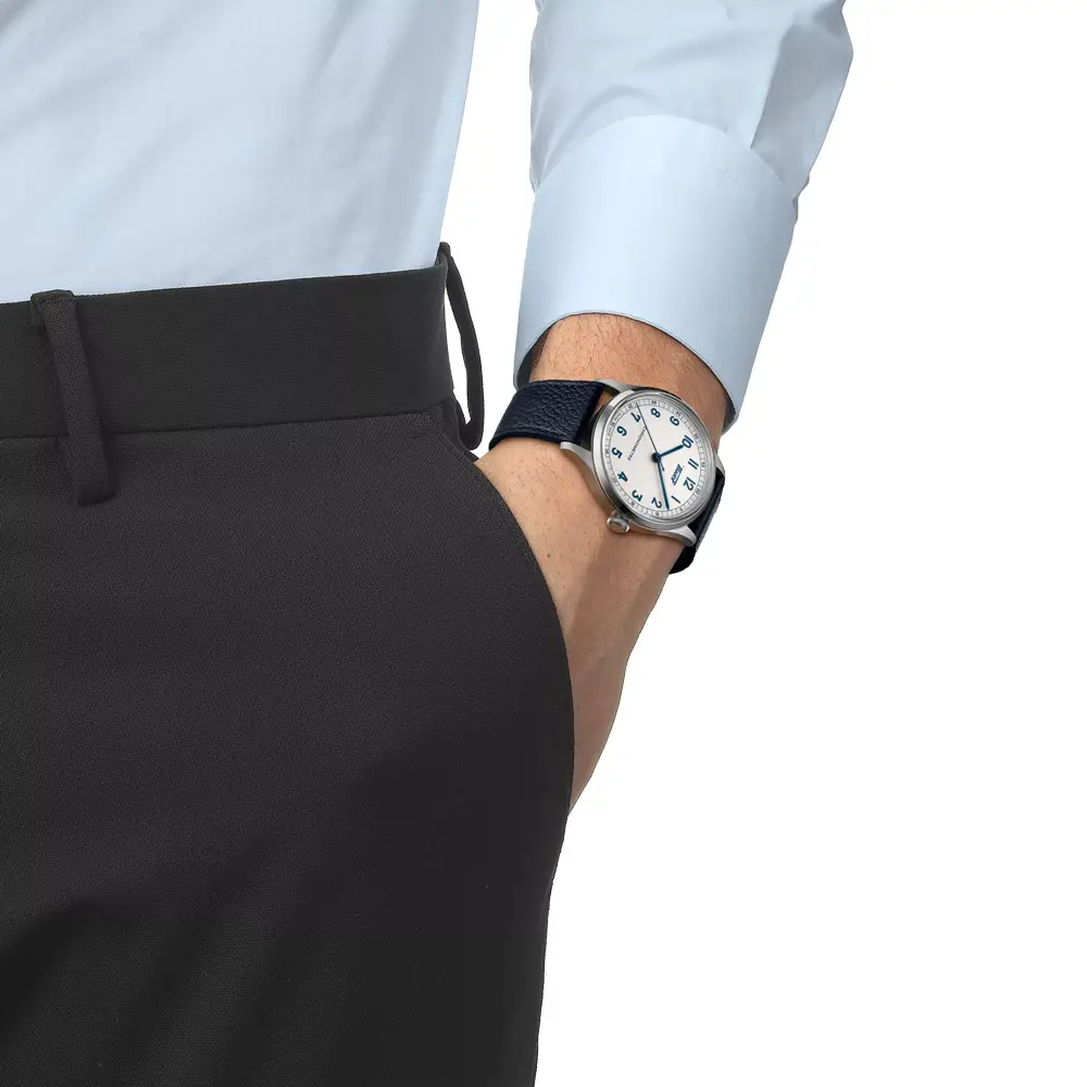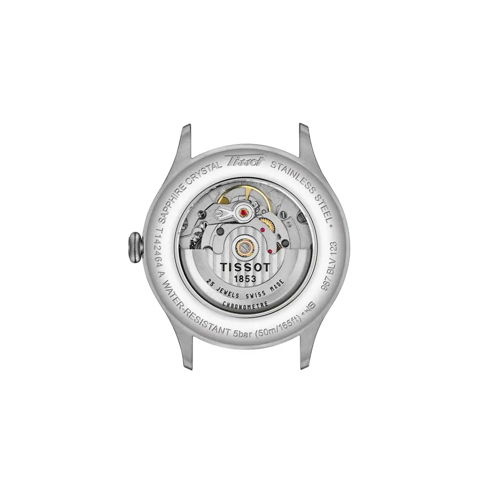 Tissot Heritage 1938 Automatic COSC tôn vinh truyền thống chế tác đồng hồ Thụy Sĩ với thiết kế tinh giản và chức năng rõ ràng. Vỏ thép không gỉ 39 mm, mặt số bạc có hoa văn và thang phút kiểu đường ray mang lại phong cách cổ điển tinh tế, kết hợp với chữ số Ả Rập và dây da tối màu.
