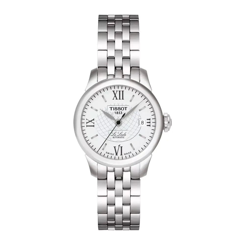 Tissot Le Locle Automatic Lady T41.1.183.33 là biểu tượng của vẻ đẹp thanh lịch cổ điển và độ chính xác Thụy Sĩ. Vỏ thép không gỉ 316L 25.3mm được tô điểm bởi mặt số bạc họa tiết Clous de Paris, số La Mã tinh tế và ô lịch ngày tại vị trí 3 giờ.
