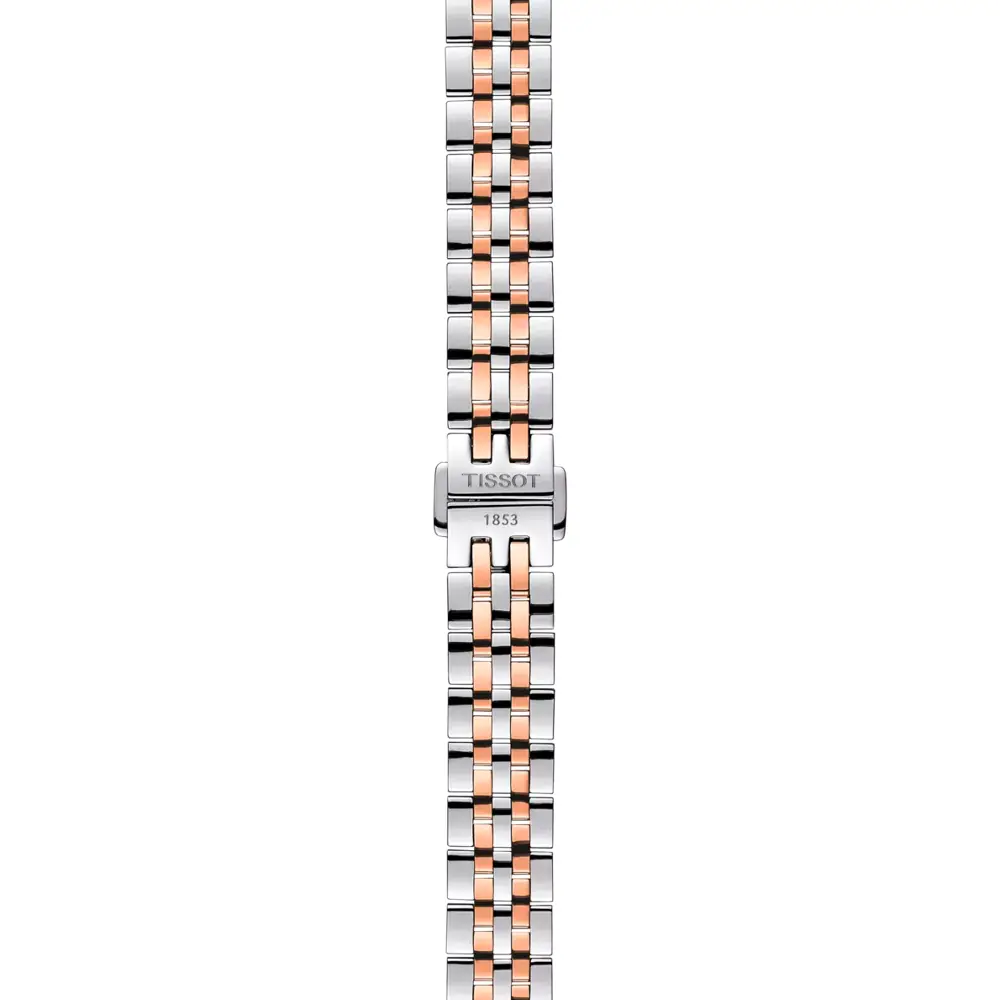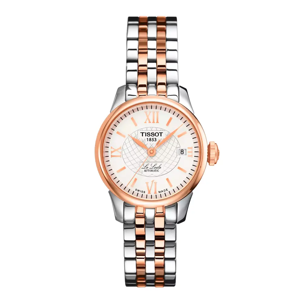 Tissot Le Locle Automatic Lady T41.2.183.33 là biểu tượng của vẻ đẹp thanh lịch và tinh tế Thụy Sĩ. Vỏ thép không gỉ 316L 25.3mm phủ PVD vàng hồng kết hợp mặt số bạc họa tiết Clous de Paris, chữ số La Mã cổ điển và ô lịch ngày tại vị trí 3 giờ.