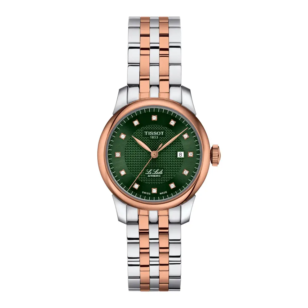 Đồng hồ Tissot Le Locle Automatic Lady T006.207.22.096.00 thể hiện trọn vẹn truyền thống chế tác đồng hồ Thụy Sĩ trong thiết kế dành cho phái đẹp. Mặt số xanh lá hiệu ứng sunray mang lại vẻ ngoài hiện đại và tinh tế, trong khi các chữ số La Mã cổ điển và kim thanh mảnh giữ trọn nét thanh lịch vượt thời gian của bộ sưu tập Le Locle.