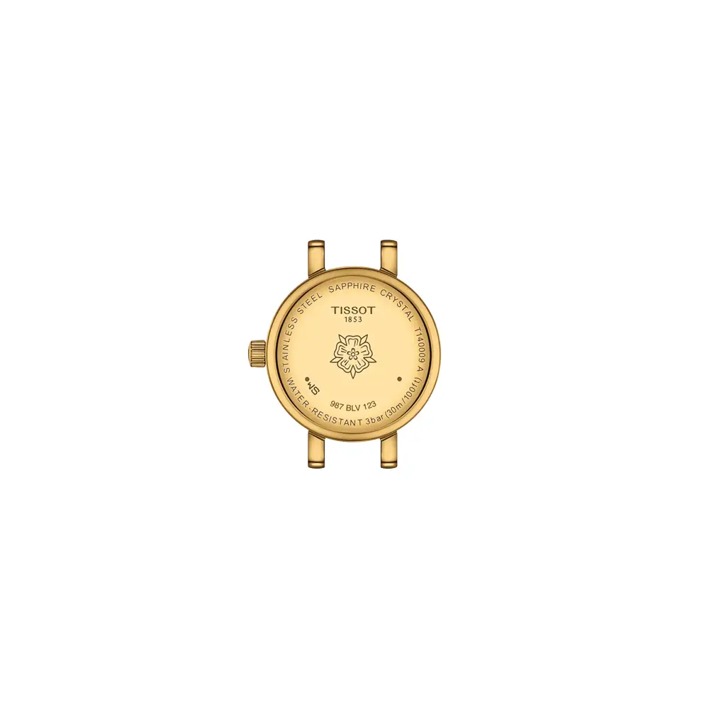 Tissot Lovely Round (ref. T140.009.36.371.00) là mẫu đồng hồ nữ thanh lịch thuộc bộ sưu tập T-Lady, nổi bật với thiết kế tối giản và kích thước tinh tế. Vỏ 19,5 mm bằng thép không gỉ phủ PVD màu vàng mang lại vẻ sang trọng nhưng nhẹ nhàng. Trang bị kính sapphire chống trầy xước và khả năng chống nước 30 m (3 ATM).
