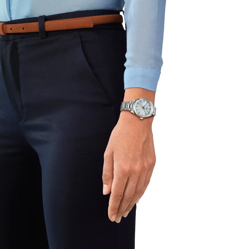 Bộ máy thạch anh ETA F05.412 đảm bảo độ chính xác và độ bền cao. Dây thép không gỉ khóa gập đôi mang lại sự thoải mái và sang trọng. Tissot PR 100 Jungfraubahn 34mm là biểu tượng của tinh hoa Thụy Sĩ, nét thanh lịch và phong thái tự tin của người phụ nữ hiện đại.
