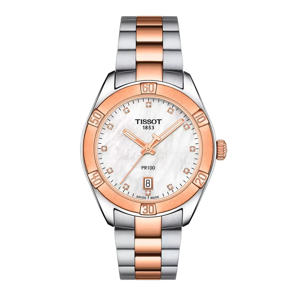 Tissot PR 100 Lady Sport Chic T101.910.22.116.00 là sự kết hợp hoàn hảo giữa tinh thần thể thao và nét thanh lịch nữ tính. Vỏ thép không gỉ 316L 36mm phủ PVD vàng hồng, kết hợp mặt số xà cừ điểm kim cương, tạo nên vẻ đẹp sang trọng và tinh tế.