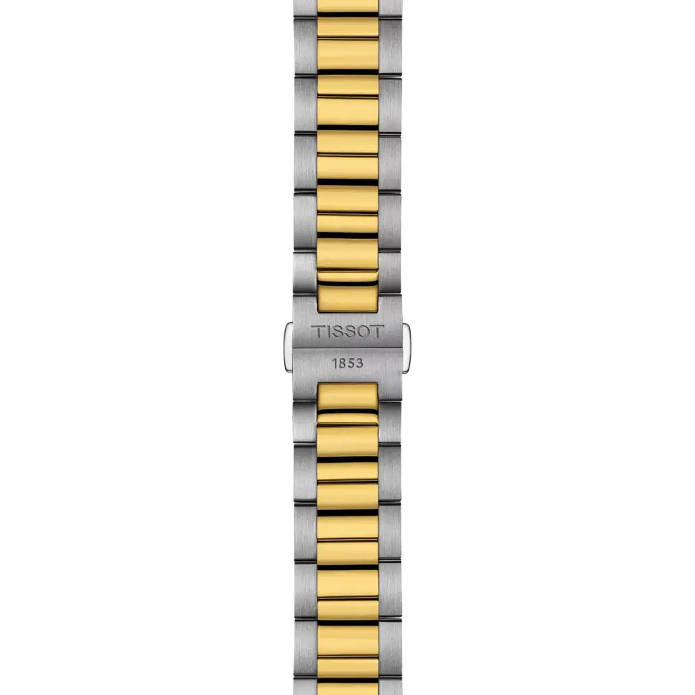 Điểm nhấn của mẫu đồng hồ này là mặt số màu xanh với lớp hoàn thiện tinh xảo, tạo chiều sâu và vẻ sang trọng. Cọc số và kim phủ dạ quang giúp dễ dàng quan sát trong mọi điều kiện, trong khi kính sapphire bảo vệ mặt số khỏi trầy xước. Dây thép hai tông màu với chi tiết PVD vàng liền mạch với vỏ, mang lại cảm giác đeo thoải mái.