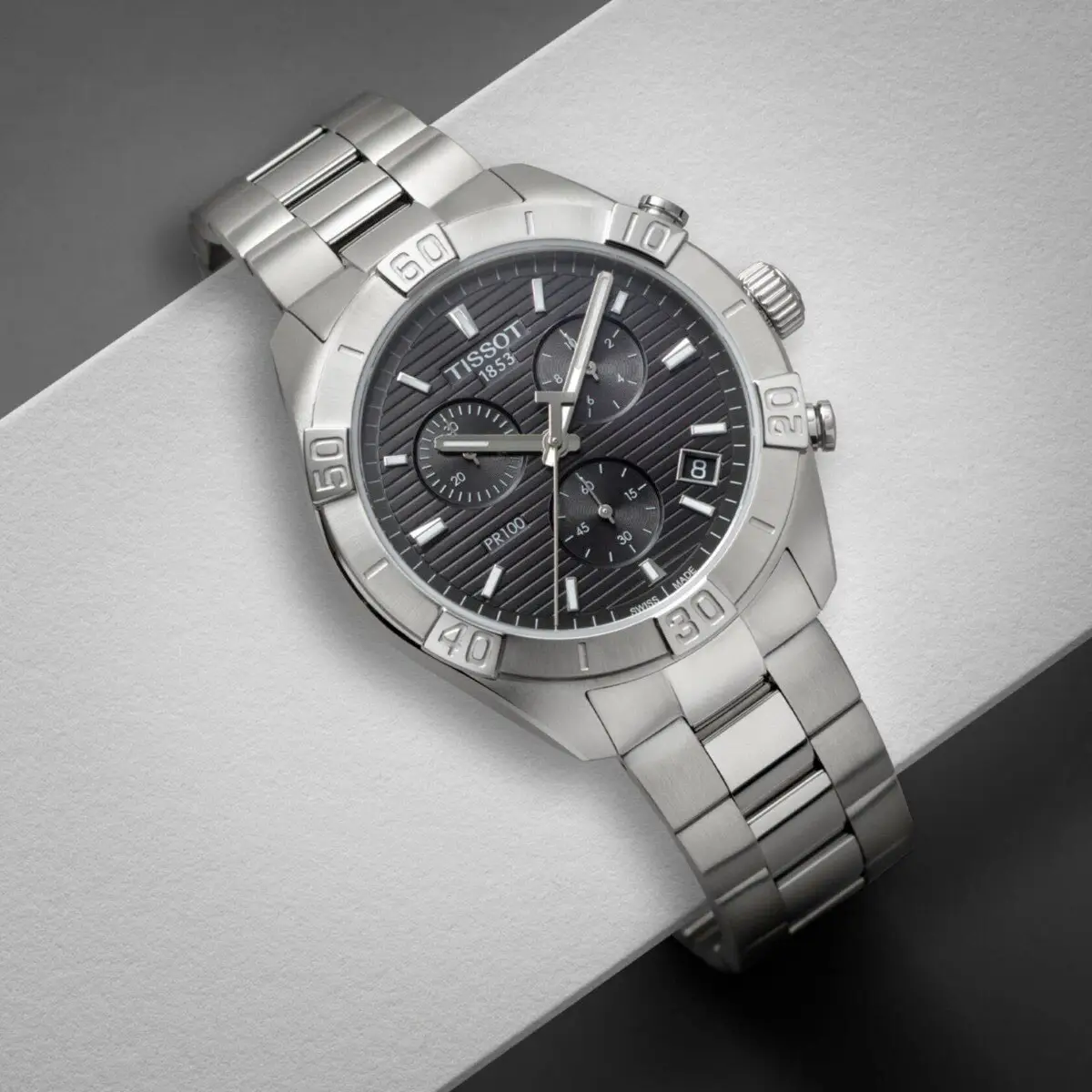 Dây thép không gỉ với khóa gập tôn lên vẻ mạnh mẽ nhưng tinh tế. Tissot PR 100 Sport Gent Chronograph T101.617.11.051.00 là lựa chọn lý tưởng cho quý ông yêu thích sự sang trọng, chức năng và chất lượng Thụy Sĩ, mang phong cách thể thao hiện đại và tinh tế.